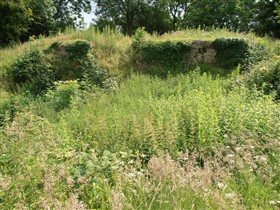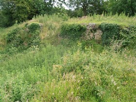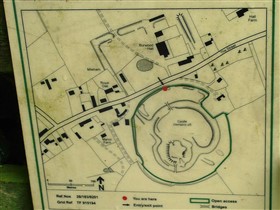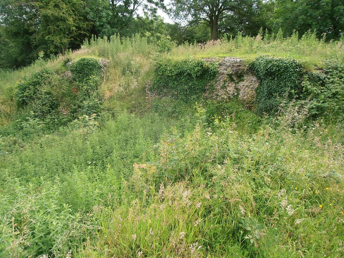 Mileham Castle is one of the largest motte and bailey castles in Norfolk. It straddles the B1145, a pre-Conquest road that remained the main east-west route through the county until the 17th century. The castle was constructed in about 1100 and its remains form a surprisingly imposing monument consisting of a motte built up around the fragments of a stone keep, two baileys and a further banked rectangular enclosure to the north of the road, which now contains Burwood Hall (built in 1793) and farm buildings. A large wooded deer park was once attached to the south of the castle. The positioning of the castle astride the road is thought to have been connected with raising revenue from a possible market place in the northern enclosure and from tolls on travellers. It is probable that the castle had fallen out of use by about 1300, but before then the tall keep, probably whitewashed, when seen against the green wooded backdrop of the deer park, would have been an impressive sight. (Norfolk HER)