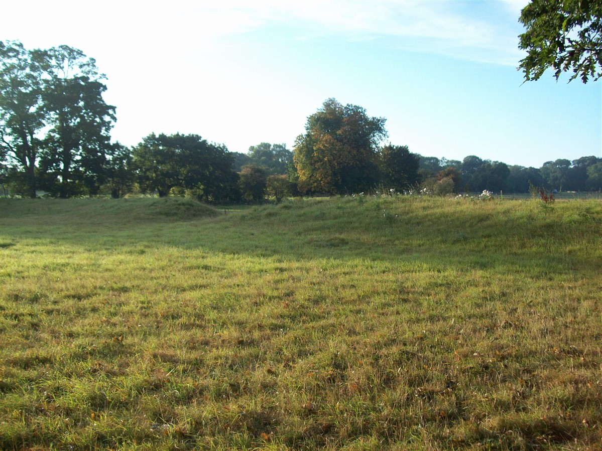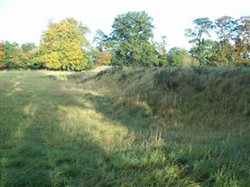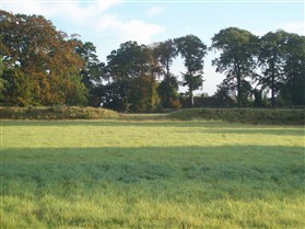 The monument includes the buried and earthwork remains of a fortified medieval manor house located at the top of the scarp above the River Trent floodplain on the south western edge of Alkborough. Antiquarians from Abraham de la Pryme in the 17th century onwards thought that Countess Close was a Roman fortification. Small scale excavations in 1879 failed to find evidence of Roman occupation, but uncovered arch stones and pottery now thought to have been medieval. Stray finds of pottery found since confirm the medieval dating of the monument. Countess Close is thought to owe its name to a Saxon heiress, Lucy, who was countess in her own right of Leicester, Lincoln and Chester and is thought to have been the daughter of William Mallet, recorded as the main land owner in Alkborough by the Domesday Book. She married Ivo Taillebois, nephew of William the Conqueror, who was Peterborough Abbey's tenant at Walcott and who was given land in Alkborough by the abbey sometime before his death in 1104. Countess Lucy went on to remarry twice, with her manor in Alkborough passing to the son of her second husband who in turn gave property to Spalding Priory. In 1147 a chapel was built following the arbitration of a dispute between Spalding Priory and Peterborough Abbey. It is thought that this chapel was built in or near to Countess Close. The monument includes a main enclosure, defined by a bank and external moat ditch, with an annex or second enclosure on the south western side. The moat ditches were almost certainly dry moats and never water filled. The whole monument is aligned with the edge of the 30m high steep scarp above the floodplain of the Trent. The bank and ditch between the main enclosure and the annex were levelled in 1965-6, but their position can be seen as soil marks and the course of the moat ditch is marked by a slight depression. The north eastern side is the best preserved section of bank and ditch. Here the moat ditch is up to 1.5m deep and measures up to 15m wide from the top of the internal bank to the outer lip of the ditch. The internal bank runs immediately alongside the ditch and stands up to 3m above its base, 1.5m above the interior of the enclosure. On the north western side, the level of the interior rises so that there is only a slight bank when viewed from inside the enclosure. From the outside it appears to be up to 3m high with the moat ditch continuing with a low external bank separating it from the steep scarp. The level of the annex is generally about 0.2m-0.3m below that of the main enclosure. It has a moat ditch on its north western side up to 2.5m deep and 6m-8m wide with a 1m high bank defining its north western side before the edge of the scarp. On the western side of the annex there is a slightly raised level area which is considered to have been a building platform for a range of buildings. In the eastern part of the annex there is a broad depression which is characteristic of areas used for holding livestock. The main enclosure, which measures approximately 80m by 90m internally, also has a level raised area on the western side. This is considered to be the building platform for the main hall and associated buildings, possibly including the chapel built in 1147. The stonework found in 1879 came from the south western corner of the main enclosure. On the eastern side the ground is quite stony, which may indicate further building remains or yard surfaces. (Scheduling Report)