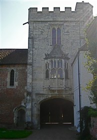 Gatehouse. c 1426-51. For Archbishop Kempe. Magnesian limestone ashlar with stone slate roof to oriel windows otherwise roof concealed by parapet. 3 storeys, 1 bay. North front: full freight, narrow angle buttressing with set-offs. Carriage arch with enriched spandrels and drip mould encroached on to right by 2 Thorpe Lane. Canted oriel window to first floor with heraldic shields to panelled base. Traceried windows with leaded lights. Roof has ornamental cresting. Blocked 2-light flat-arched window to second floor under drip mould. Coved cornice and parapet. Original stair turret with slit windows projects above main roof level. Rear: 4-centred pedestrian archway to left and 4-centred carriage archway to right, both contained under large segmental arch with cornice. First floor band with heraldic shields and capping. Centre 3 shields project slightly to support oriel window of 3 traceried lights, with 4-centred head. Ornamental cresting to roof. To second floor: 2-light window with small leaded panes and traceried heads under drip mould. Angle buttresses with set-offs rise from heraldic band to support coving and parapet. Octagonal stone chimneys to each side. Interior: carriageway has tierceron vaulting. 4-centred doorway to stairs. One original oak door is lying on its side in carriageway. (Listed Building Report)