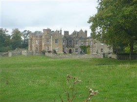 Country House. C14, 1658 and 1855. Rubble with ashlar dressings, ashlar, Welsh slate roofs. H-plan, 2 storeys. Entrance front facing east of 5 bays between long wings, bays 2 and 4 slightly projecting. Central classical entrance inscribed 'S. C. S. 1907'. Cross windows. Pierced and balustraded parapet, over end bays pierced to read 'S. S. 1658', referring to Simon Scrope I. Corniced ashlar stacks. Symmetrical 5-bay inner facades to wings, bays 2 and 4 slightly projecting, with cross windows, balustraded parapets. Rain water heads dated 1947. End elevations of wings: one bay cross windows, coped gables, apex finials. Right wing has C14 3-storey pele tower of very small plan area, with battered base, 2-light double-chamfered mullioned windows on first and second floors, crenellated parapet. Rest of right wing perhaps C14 in core, but its right return mainly of C18 sash windows with glazing bars. Rear elevation of cross range: irregular but original C17 2-light double-chamfered mullioned windows, also cross windows to staircase with stained glass. 5 gables with coping and finials, and 2-light mullioned windows with original leaded-light glazing. On the left an C18 wing; and c1900 Billiard Room to right. Garden front dated 1855 by Joseph Hansom. Ashlar. 1:3:3:3:1 bays. Plinth. Cross windows, string- courses. In centre 5-sided cantedbay. Square end bays supporting octagonal turrets for unfinished cupolas. Pierced parapet. Interior: fine original C17 newel staircase with turned balusters arid moulded handrail; C17 panelled drawing-room with bolection mouldings, ribbed corinthian pilasters, dado, entablative, painted and gilded. (Listed Building Report)