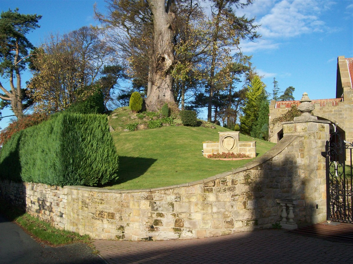 Castleton was a motte castle devoid of a bailey. The motte is a horseshoe shape, and measures about 200ft from the north east to southwest by 160ft from north west to south east. The rampart, which carried the stockade, is still perfect on the western summit. On the south west it is enlarged to form a small hillock to bear a small flanking tower commanding the entrance, which was evidently on the site of the present one. This hillock and a similar arrangement which undoubtedly existed on the other side of the entrance is proof that no bailey existed (l'Anson).