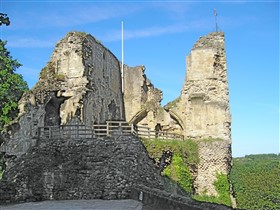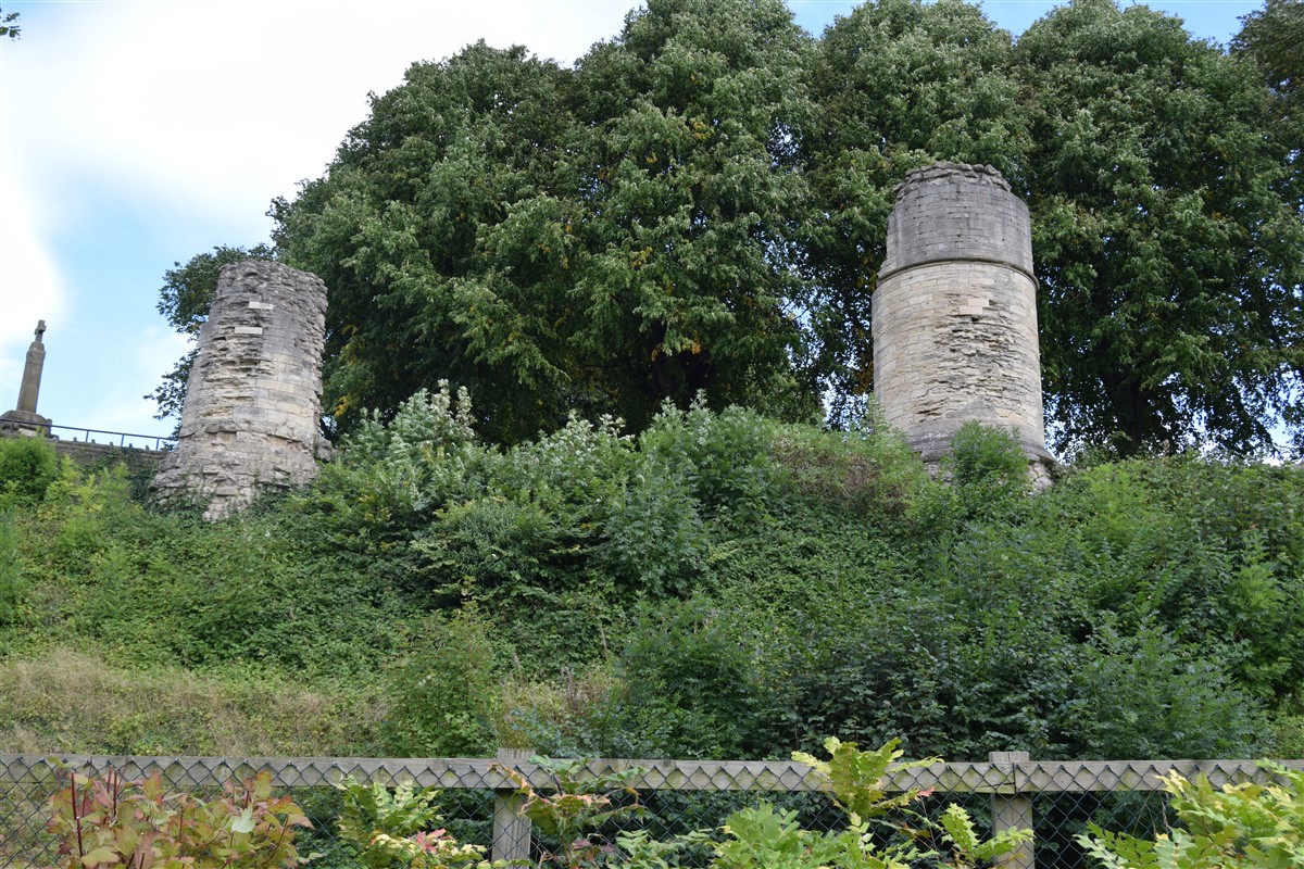Despite partial demolition significant remains of Knaresborough Castle survive. In addition to the ruins the below ground remains of the earlier castle are known to survive. The castle has been extensively studied and evidence of significant developments in military architecture are preserved. The castle also featured heavily in the history of medieval England. Taken together the remains at Knaresborough provide important evidence of the development of castle design as well as the history of a major royal castle in the north of England. The monument includes upstanding and buried remains of the medieval castle at Knaresborough. It is located on a promontory to the west of the town overlooking the River Nidd to the west. The castle has always been a royal stronghold and was associated with a number of significant historical figures including; the knights who murdered Thomas a Beckett, King John, Kings Edward I and II, Piers Gaveston, King Richard II and John of Gaunt. The earliest known reference to a castle at Knaresborough is 1130, however the visible ruins date to the 14th century. In the early 13th century the castle was maintained by King John as one of his administrative strongholds in the north, and a major programme of works was started in 1204. A century later King Edward I in turn began a programme of modernisation of which only the twin towers of the east gate and fragments of the curtain wall survive. In 1307 his successor King Edward II granted the Honour and Castle of Knaresborough to his unpopular favourite, Piers Gaveston. During this period substantial sums were spent on the castle and the great keep known as the King's Tower was built on the site of an earlier tower. In 1317 the castle saw military action as part of the unrest against the king and in 1318 was used as a refuge from incursions by Scots raiders