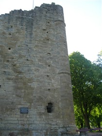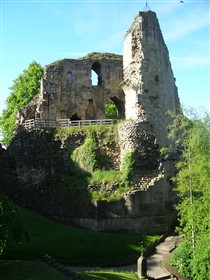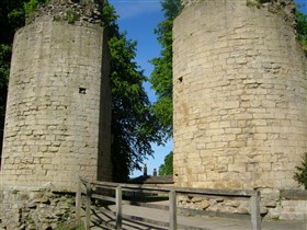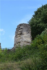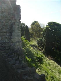 In 1331 the castle was granted to Queen Philippa as part of her marriage settlement with King Edward III and thence became a royal residence. In 1372 John of Gaunt acquired the Honour and Castle of Knaresborough and it became part of the estates of the Duchy of Lancaster, a status held to the present day. After the accession of King Henry IV in the early 15th century the castle ceased to be actively used by the monarchy but continued in its role as the administrative centre for the Honour and Liberty of Knaresborough. During the English Civil War the castle supported the Royalist cause. In July 1644 it was besieged by the Parliamentarians and finally surrendered in December of that year. In 1648, on instructions from Parliament, the castle was thoroughly demolished. Nearly the entire circuit of the curtain wall and all internal structures save the courthouse and part of the King's Tower were destroyed. These buildings survived, as they were required to serve as a courthouse and prison respectively. The moat on the eastern side was also filled in. This made the demolition of the castle easier, offered a place for dumping the rubble and also linked the castle with the town thus breaking its defensive and military role. Throughout its active life the castle served as a focus for the surrounding community, offering refuge in times of danger as well being a major local and regional administrative centre. Subsequent to the demolition of the castle most of the usable stone was removed for buildings in the town, particularly in the 18th century. In the 18th and 19th centuries, along with other local attractions, the castle became a popular site for visits by the developing tourist trade centred on the nearby spa town of Harrogate. This use as a leisure amenity continued at the end of the 19th century when landscaping to form pleasure gardens to celebrate Queen Victoria's jubilee was commenced. Since then the castle grounds have remained in public use for leisure and recreation. The castle displays a pattern typical of the medieval period; an impressive tower, walled enclosures known as the inner ward and outer ward and an external moat. The monument is dominated by the ruins of the King's Tower, which is located in the northern part of the monument directly overlooking the river. It is a massive stone structure which originally contained four storeys: a vaulted basement, a vaulted chamber at ground-floor level, a tall first floor hall and a second floor chamber. The two upper floors were badly damaged in the 17th century so that only about half of the walls and only the floor of the hall survive. The tower housed the residential rooms of the lord, including the domestic chamber, chapel and the hall. Many architectural details such as windows, doorways, stairs and roof and floor supports survive, which along with documentary sources provide evidence of the original internal arrangements. Detailed analysis of the surviving architecture and comparisons with castles elsewhere has shown that the hall was an imposing space whose scale and layout was intended to dominate and impress visitors. Access was via a grand stairway on the eastern side of the tower, which led the visitor past a series of ostentatious architectural features which further expressed the power and status of the lord. Such displays of power became a common theme of castle architecture from the 14th century onwards and Knaresborough is one of the earliest examples of this transition in military architecture away from a predominately defensive and military role towards comfort, elegance and the display of prestige and power. The tower was located on one side of the inner ward which occupies the western part of the castle. This was the enclosure in which wider domestic and administrative activities took place. Structures located here are known from the 16th century survey to have included the Great Hall, kitchen, larder and the courthouse. This last building still survives and its medieval origins can be clearly seen. The inner ward was separated from the outer ward by a stone wall, part of which survives as the rear wall of the courthouse. The remainder of the wall no longer survives above ground although its course is known from geophysical survey and excavations in the 1920s. The outer ward was the area in which the economic and industrial needs of the castle were supported. Surveys of the 16th century indicate that activities here included milling, brewing, baking, metalworking and the stabling of horses. Excavations carried out to the south east of the court house complex in the 1920s revealed stone footings for buildings. One of these structures was built against the curtain wall and the remains of a total of 14 hearths and furnaces were found showing that it was used for smelting and metalworking. Also in the outer ward were two sallyports. These were underground tunnels which were used for secret access to and from the castle. They were cut through the rock and were large enough to accommodate riders on horseback. Surrounding the outer ward was the main curtain wall. This was a massive stone wall buttressed at intervals by towers. Little of the wall now survives above ground. Access to the castle was via two gateways leading into the outer ward. One of these at the eastern side of the castle still has a pair of gatehouse towers standing to much of their original height. The second entrance was located in the outer ward immediately to the east of the King's Tower. The gateways were defended by fortified gatehouses which by the 14th century were imposing structures designed to impress as well as to defend access. The gateways were accessed by bridges spanning the moat. Remains of these bridges and their footings will survive below ground. Surrounding the castle on all but the western side was a massive dry moat which measured up to 30m wide. Excavations in the 1920s showed that the southern arm of the moat, adjacent to the sallyp