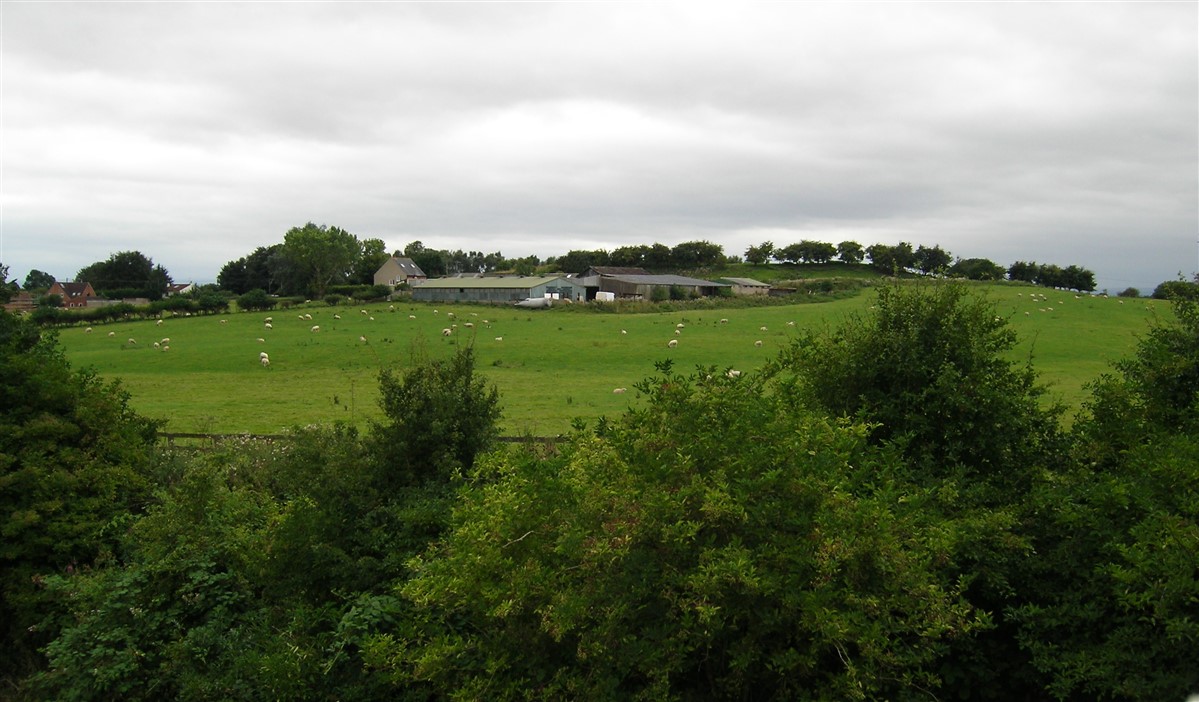 SE 3612 9414. Castle Hills, a natural eminence under permanent pasture at about 50m OD, has been sculpted to accommodate a ringwork, much of which was destroyed in a railway cutting constructed in 1838, so that only the NE arc remains. There was formerly a bailey to the E of Castle Hills, and another, probably to the W, though this too is severely mutilated by the railway and associated quarrying. The complex was surveyed in 1988 by RCHME Newcastle at 1:2500; a more complete description is held in the NMR archive. In the surviving NE sector of the ringwork, the bank is up to 1.5m high above the interior, which is level and featureless, and about 3.3m above the surrounding ground to the E where piggeries have encroached upon the base of the mound