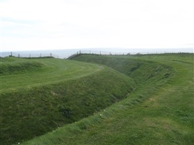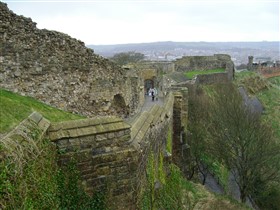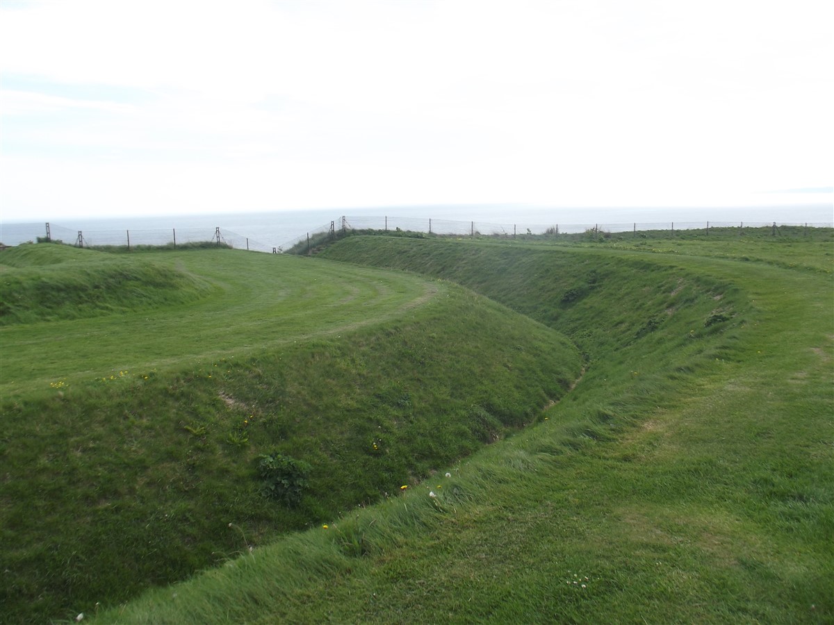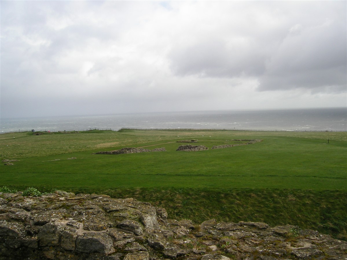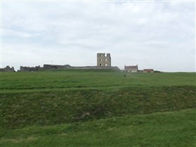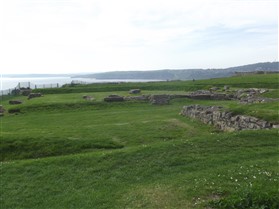 Scarborough Castle is situated in a prominent cliff-top location overlooking the town to the west and the North Sea to the east. The monument is a multi- period site comprising a single area containing a number of features. These include the buried remains of a Late Bronze Age/Iron Age settlement, a Roman signal station, the site of an early 11th century chapel belonging to the Anglo-Scandinavian settlement, the 12th century enclosure castle which continued in use down to the 19th century, and an 18th century gun battery. Evidence for the earliest of these features was discovered during partial excavation on the site of the Roman signal station in 1920-24. A large number of pits were found containing bronze axes and tools, items of jewellery made of shale and bronze, material associated with bronze smelting, and a quantity of Iron Age pottery. A bronze sword was found in 1980 and two urn burials have also been uncovered. The evidence indicates settlement on the headland from about the sixth century BC and it is likely that the site was a promontory fort whose defensive earthworks may have been incorporated into the medieval defences. This, however, has yet to be confirmed. Archaeological investigation of the prehistoric settlement has so far concentrated on the eastern extreme of the headland around the Roman signal station. The signal station itself was one of a string established in the fourth century AD along the North Sea coast to warn of sea-raids. Others are recorded at Huntcliff, Goldsborough, Ravenscar and Filey whilst, at Whitby, Roman material suggestive of a sixth has been recovered. The example at Scarborough comprised a square, ditched enclosure with rounded corners and small angle bastions. This had a diameter of 33m and enclosed a small courtyard containing a double-stepped plinth which formed the base for a central tower between 27m and 30m high
