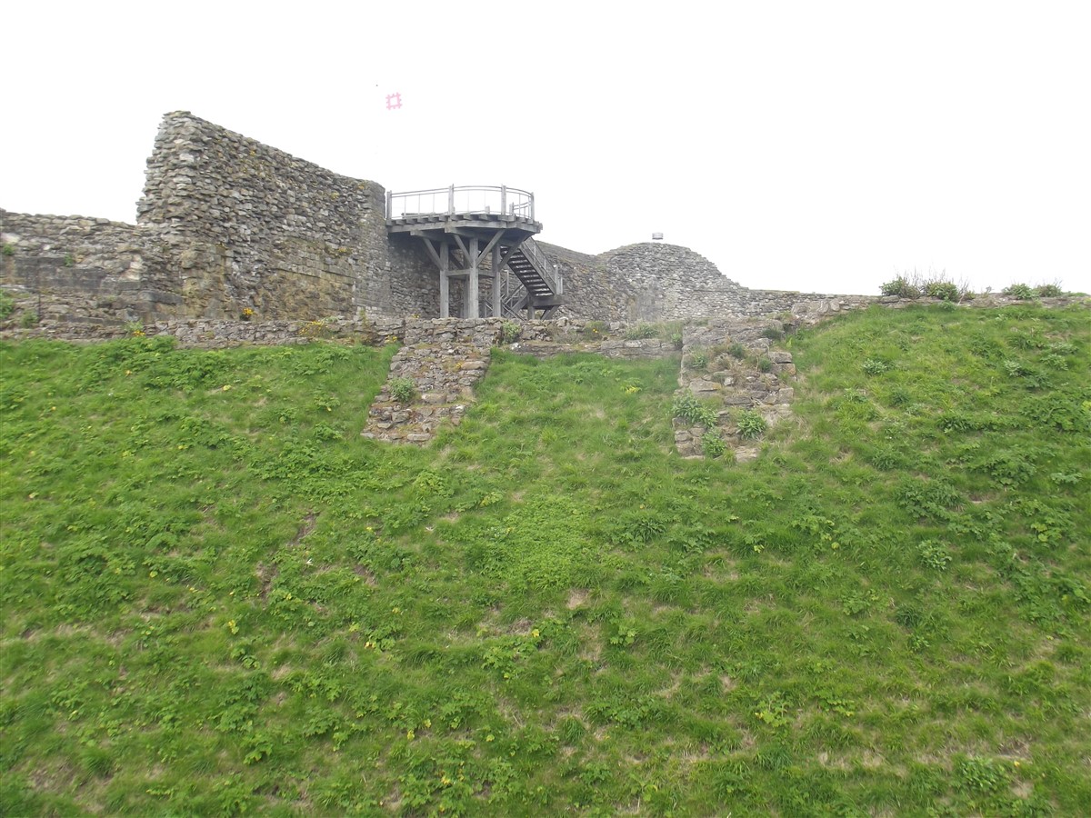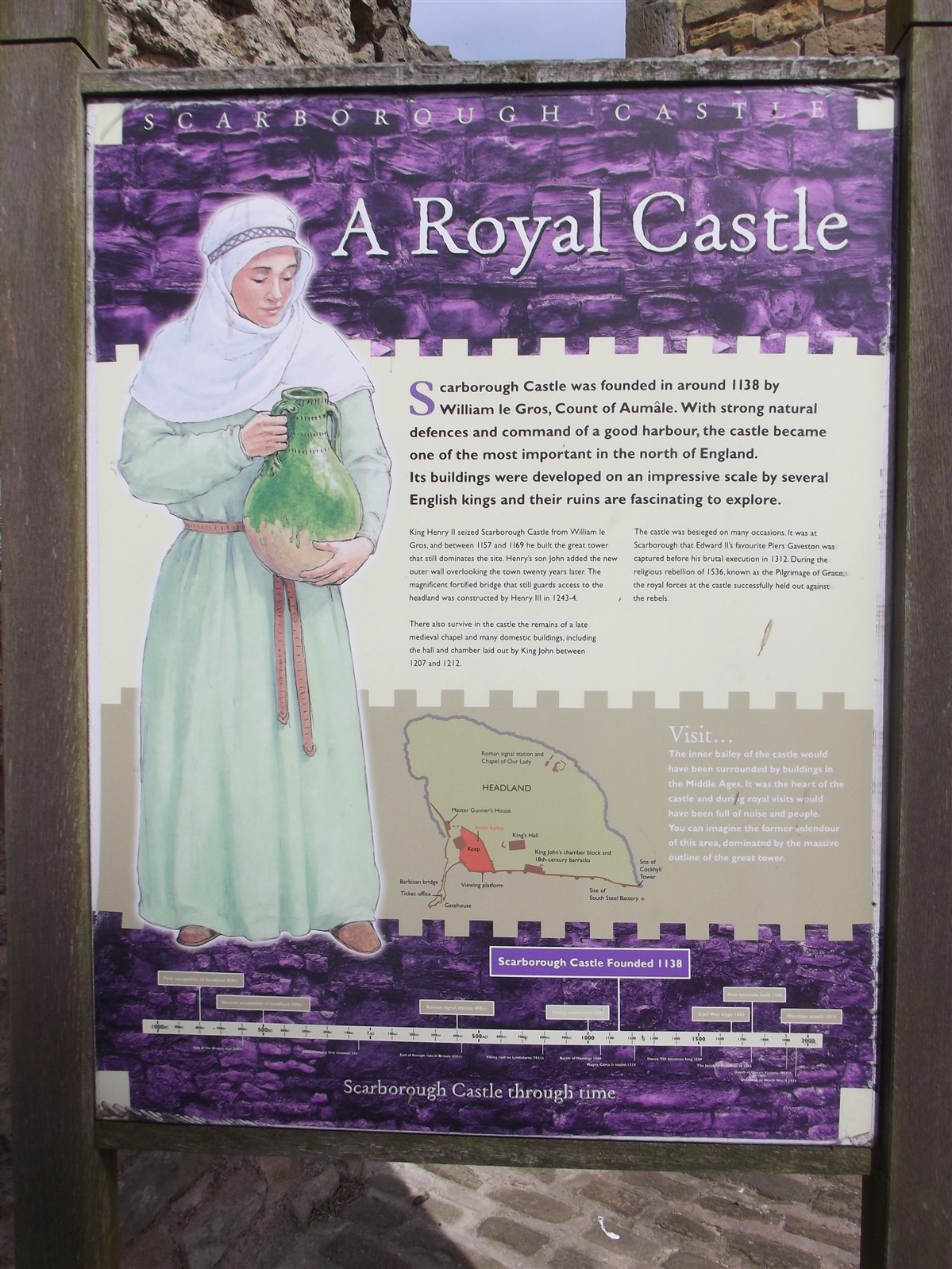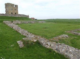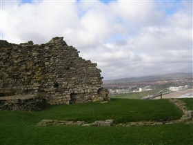The signal tower was built of wood but had stone foundations and was guarded by a gatehouse that controlled the entrance into the courtyard. Coin evidence indicates the station was built in c.AD 370 and occupied almost continuously until the early fifth century when it was overrun and destroyed. The remains excavated in the 1920s are now laid out for the public to view, but parts have been destroyed by the erosion and partial collapse of the cliff, as has the medieval Cockhill Tower which formerly stood at the southernmost point of the headland. Found on the same site as the signal station were the remains of a chapel built in c.1000. Three of the walls of the signal station were incorporated into three sides of the chapel, the south side alone being new. Little is known about the chapel except for its layout. It had a square chancel with a diameter of 3.6m and a nave measuring 6m by 5.1m. The churchyard was enclosed by the wall of the Roman courtyard. Documentary evidence indicates that the pre-Conquest town of Scarborough was founded by two Viking brothers, Thorgils and Kormac, and it would have been this settlement that the chapel served. The chapel was destroyed in the mid-eleventh century, most likely during the reputed sacking of the town by Harald Hardrada and Tostig Godwinsson. Although no other remains of the town have so far been found it is believed that evidence of Anglo-Scandinavian occupation will survive on the headland in the vicinity of the chapel. The defensible position of the headland, steep cliffed on all but the south- west side and joined to the mainland only by a narrow isthmus, led in c 1135 to it becoming the site of a castle. The original fortifications comprised a ditch cut into the natural gorge that crossed the isthmus surmounted by a wall or palisade. A gatetower was built to protect the entrance which then lay somewhere along the approach between the later medieval barbican and keep. There was no keep in the early castle, but the remains of a wide range of timber buildings dating from this time, and including both garrison and domestic structures, will survive on the headland between the entrance and the cliff edge. The sites of two 12th century buildings are already known: the highly decorated stone-built Chapel of Our Lady, built on the remains of the chapel destroyed in 1066, and a free-standing Norman hall of aisled construction. The landward side of the headland was fortified by a curtain wall begun at this time. The visible remains of this wall, however, date to the late 12th and early 13th centuries when it was strengthened by the addition of a series of round-fronted towers. This work formed part of a major programme of refortification begun between 1158 and 1164, during which time too the gatetower was demolished and a stone keep built at the head of the isthmus. An inner bailey was created behind the keep by the construction of a palisaded bank and ditch. A stone gateway at the northern end provided access to the rest of the headland, which now became the outer bailey. The keep was square in plan, about 30m high, had a turret at each angle and was four-storeyed. Typically of the period, access was via a flight of stone steps which led from outside the south face of the keep, through a forebuilding and to the first floor. Later in the 13th century, the inner bailey was given a stone wall with two gatehouses, a new outer gate and barbican were built, and the causeway across the outer ditch was given two drawbridges. Within the castle, the remains of a number of later medieval buildings can be seen in the bailey and against the curtain; amongst them Mosdale Hall, rebuilt in the late 14th century by the then governor of the castle, John Mosdale. Also, in its original form, of 14th century date, is the wall leading from the postern at the southern end of the curtain wall which shielded the path that led from the castle down to the harbour. Two wells are also known: Our Lady's Well, located within the signal station, and the late 12th century castle well inside the inner bailey. A third chapel also existed, built on the site of its predecessors in c.1312 and destroyed in the 17th century. The medieval castle was originally founded by William le Gros, Earl of Albemarle. In 1154, however, it was seized by Henry II and, but for three days in 1557 when it was held by Sir Thomas Stafford, it remained a royal castle until 1619 when it was granted by James I to John, Earl of Holderness. Its royal owners spent considerable sums maintaining and improving its defences. It suffered damage from time to time during the foreign wars and political struggles of the 14th and 15th centuries, was attacked on numerous occasions by the French and Scots during the 16th century. It underwent two prolonged sieges during the Civil War of the 17th century, after which it was slighted by order of Parliament though the west face of the keep had already been destroyed by canon and other buildings had been severely damaged. The keep was never repaired but some parts of the castle were restored and new buildings were added. In 1746, in response to the perceived threat of the Young Pretender to the English throne, barracks for 120 troops were built on the remains of Mosdale Hall and the South Steel Battery was constructed at the southernmost point of the castle to house twelve guns overlooking and controlling the harbour. A garrison was still kept at the castle into the 19th century but it had little military use and, in 1914, was bombarded by two German cruisers who damaged buildings including the barracks. The headland and ruins have been in State care since 1920 and are in the ownership of the Crown. A number of features within the protected area are excluded from the scheduling. (Scheduling Report)