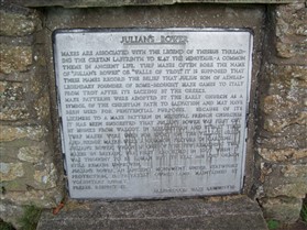 St Julian's Castle (site of) applies to the site of an ancient castle. Ord in his history of antiquities of Cleveland gives the date of this castle as AD 1294. There is no trace of the ancient moat. St Julian's Castle was a mansion or hunting lodge belonging to the de Mauleys of Mulgrave. The forest of Egton was granted to them in 1222 and the house was probably built within its deer park (NZ 80 SW 11) later in the same century. It was used as a residence in 1294, and although the later history is obscure its occupation was probably short. Young (1817) mentions the regular form of the site, presumably the moat, which measured 80 yards by 60 yards. The building itself seems to have been completely eradicated in the mid-19th century, for Banks (1866) says the then present tenant of the land had dug up the foundations over half an acre and brought the site into cultivation. Only a fragment of a building now remains, situated near the spring on the east side of the field, and worked stone is visible in the adjacent field wall. A "Saxon quern or handmill", 15 ins diameter and 5 ins high, was found near the site (Whellan). (PastScape)