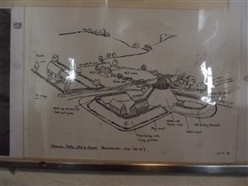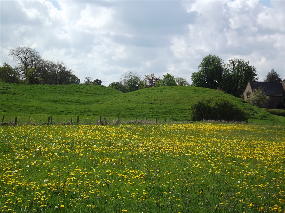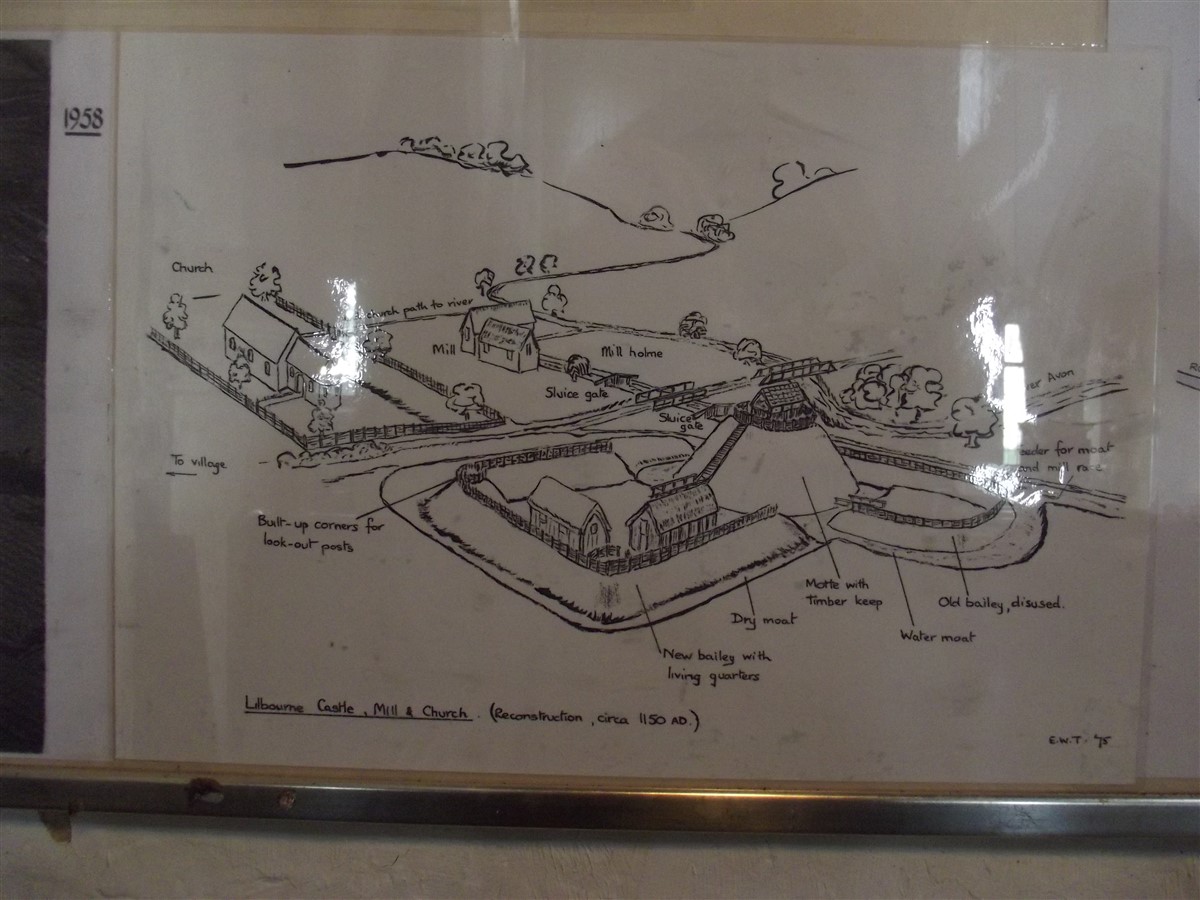 Avon, on alluvium and river gravel at 95 m. above OD. Its position is in marked contrast to the other motte in the parish and it appears to control the river crossing. Nothing is known of its date or its history, but the two stages of development visible in the surviving earthworks suggest that it may have started as a small motte and bailey of the late 11th century and was then rebuilt and strengthened perhaps in the mid 12th century.