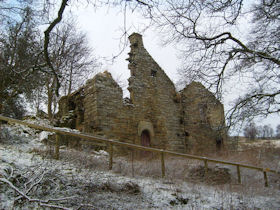 There have been various secondary additions to the original house; a two-storeyed block on the north (again with a non-domestic ground floor), and small external building at the south-east corner and a small addition at the uphill (west) end. The first of these, which may be of early nineteenth-century date, is the only part of the group to remain roofed. The surviving east gable of the original building is now in a very precarious condition.