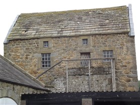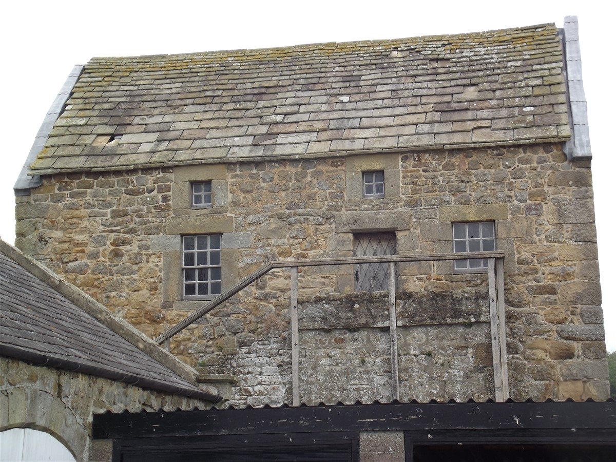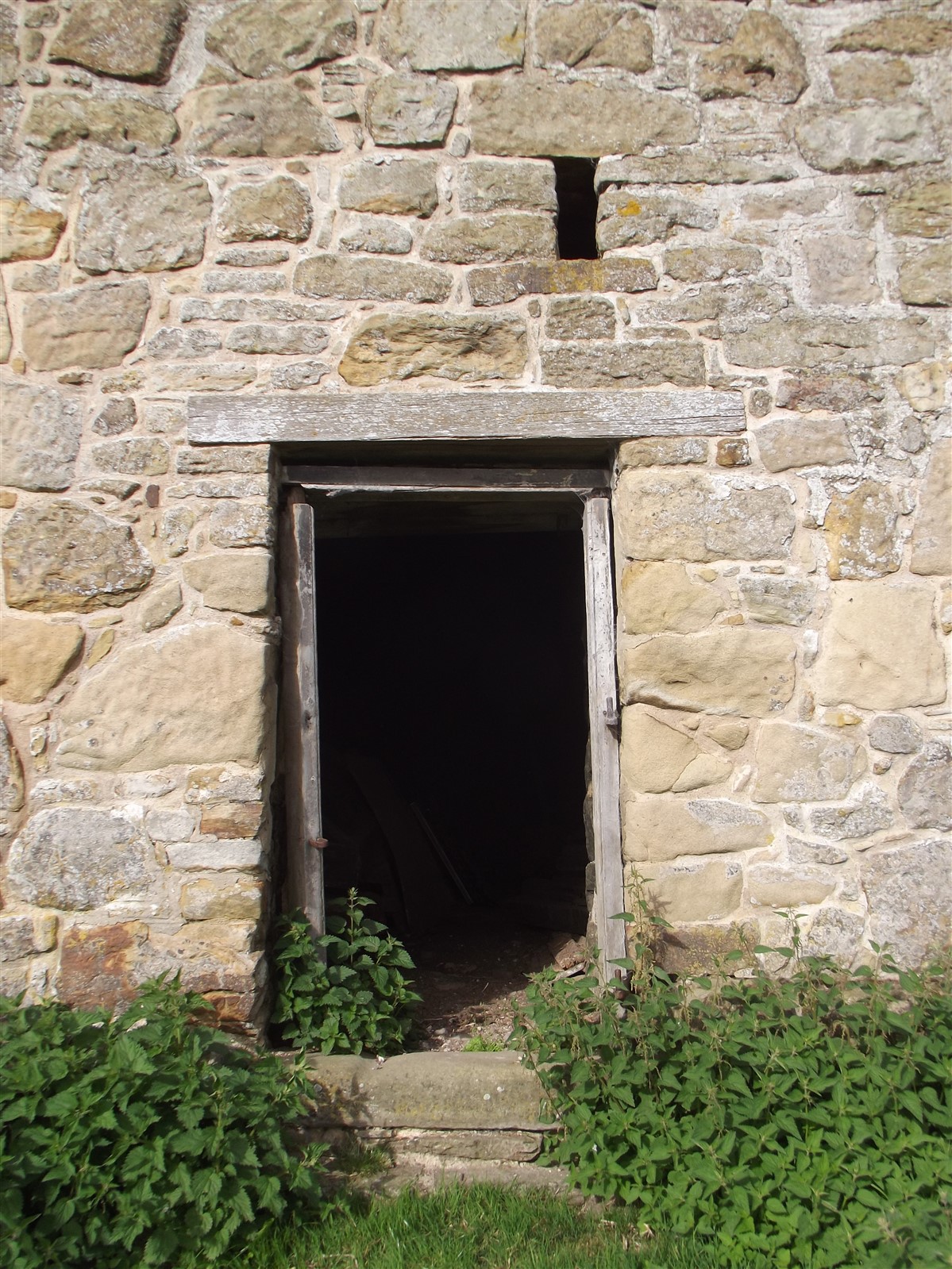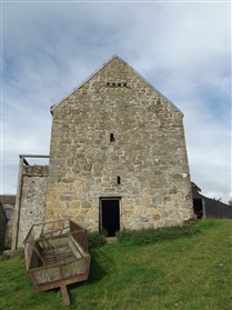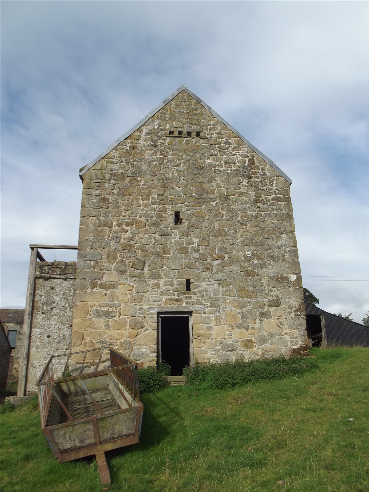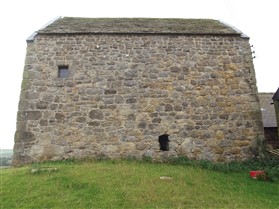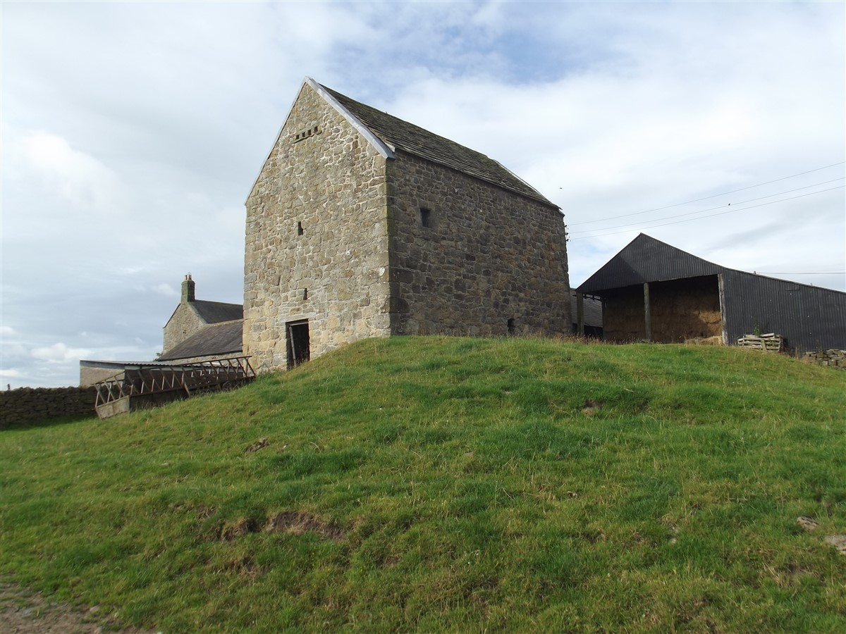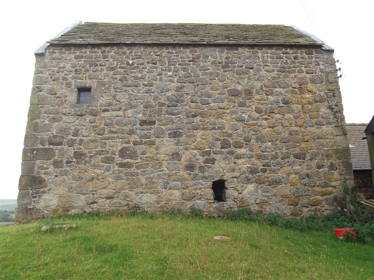 Bastle house. C16. Long sides heightened and 1st floor windows added C18. Random rubble 4½ ft thick with boulder plinth and stone slate roof. 2½ storeys. 35 ft by 22 ft. Original ground-floor doorway now blocked on left return and later door inserted on right return. Slightly later stone outside stair to original 1st floor doorway with chamfered surround and rebates for harr-hung door. C18 windows to either side. 2 smaller original windows, re-set above are 16 by 18 inches and have chamfered surrounds with holes for 2 vertical iron bars. Similar window to rear and 2 slit windows on right return; also 5 pigeon holes above alighting ledge in right gable.