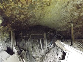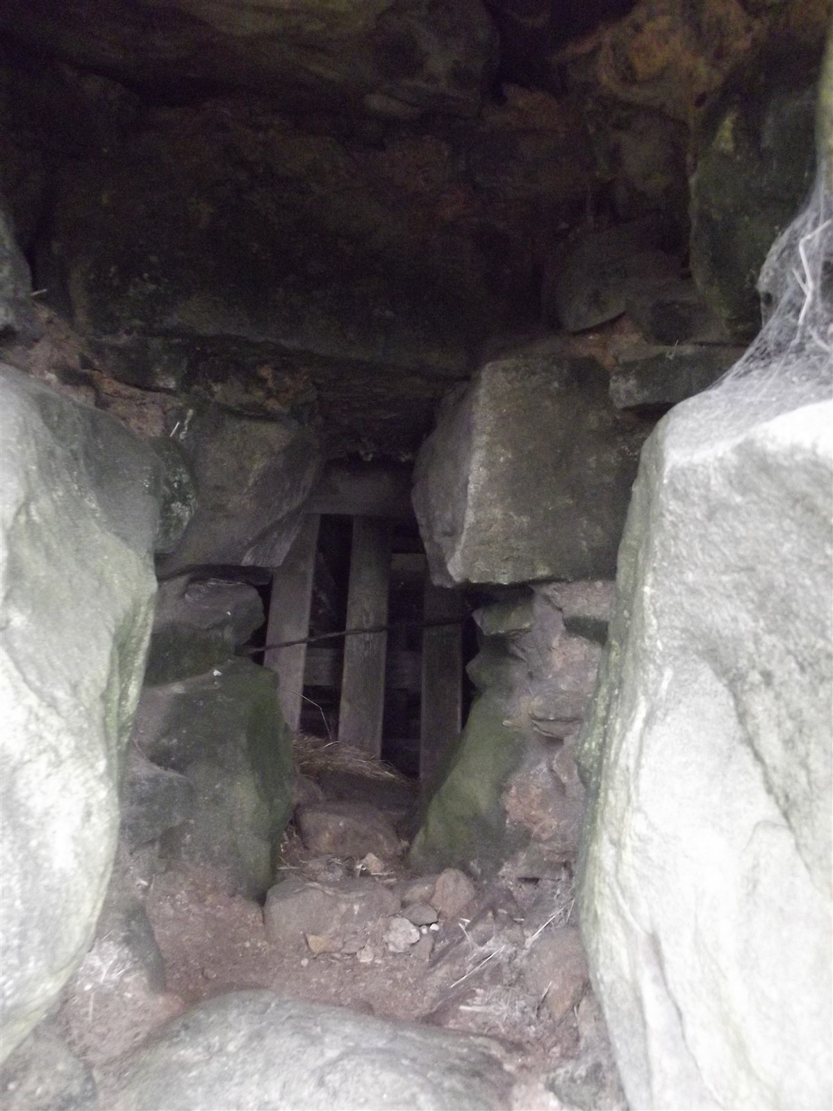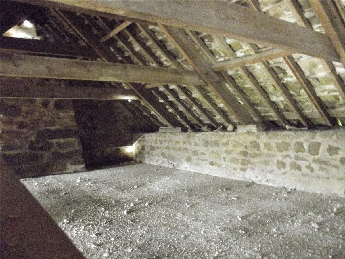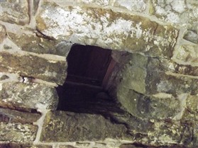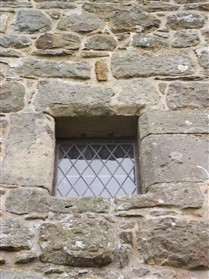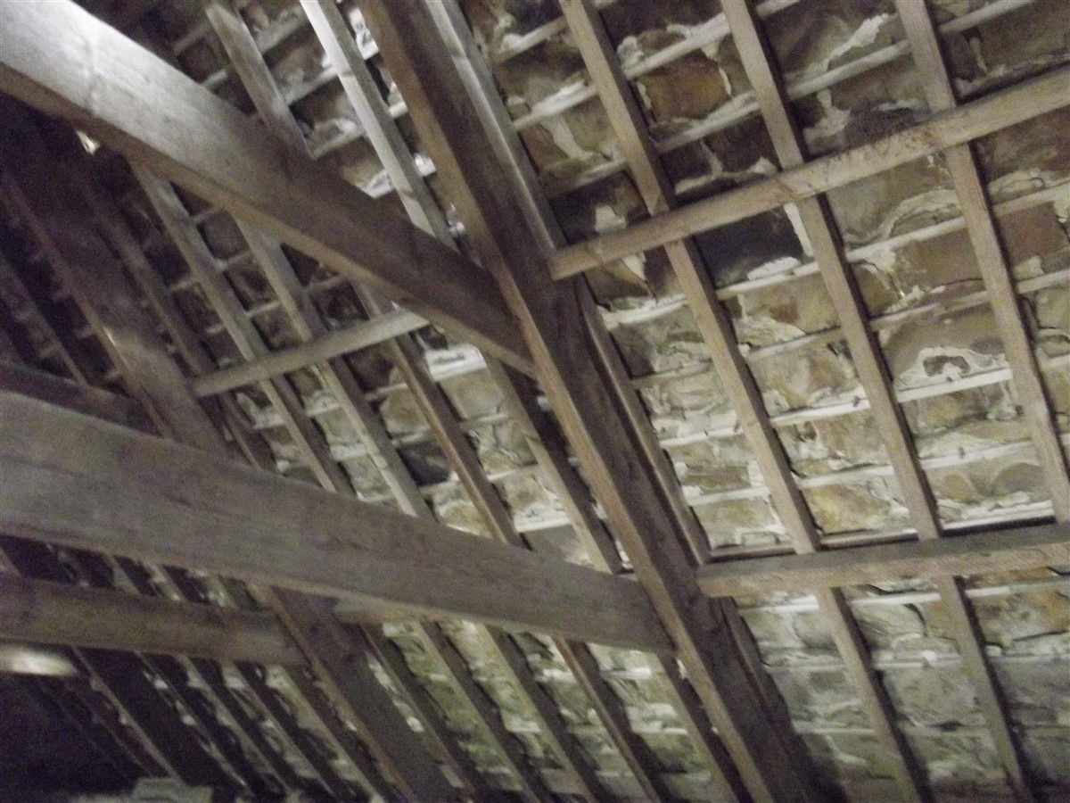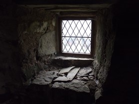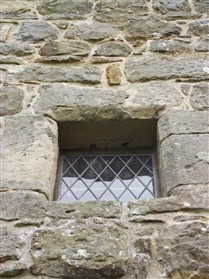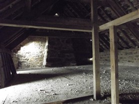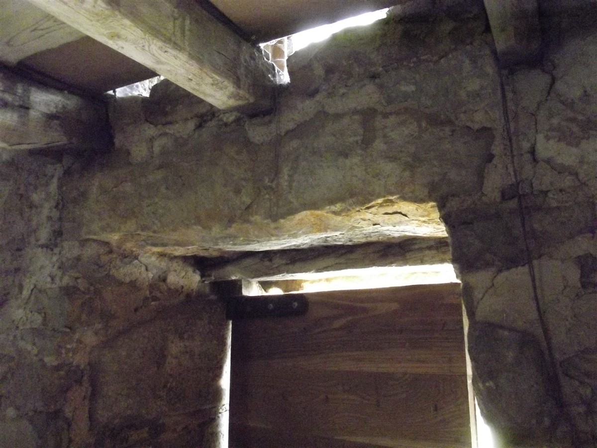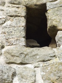 Interior has barrel-vaulted ground floor with narrow ladder-hole to 1st floor. Fireplace on 1st floor has timber lintel and square recess to right. Rustic wood stair to attic. (Listed Building Report)