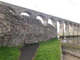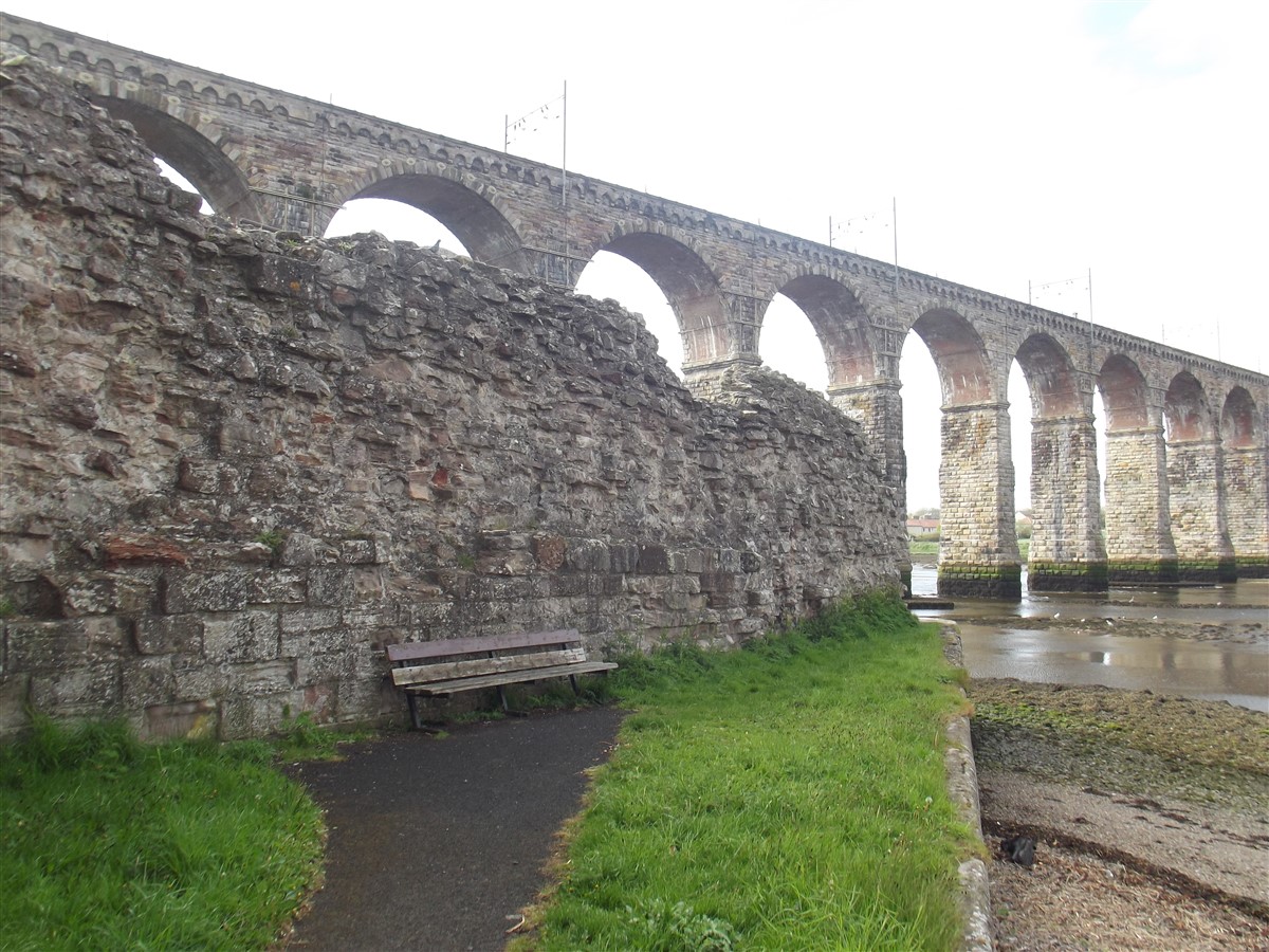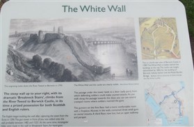 The standing remains of Berwick Castle which includes the west wall of the castle, the south east angle tower known as the Constable Tower and a length of curtain wall adjacent to it, as well as the flanking wall known as the White Wall. A castle at Berwick is first mentioned in documents dating to C12, although most of the remains which are visible today date from a re-modelling of the structure in the late C13 and subsequent centuries. When Edward I captured the town of Berwick from the Scots in 1296 the existing castle was strengthened. At this time an additional length of wall known as the White Wall was constructed. Large sections of this wall have been levelled and survive as foundations however the west wall and parts of the east wall of the castle survive as standing structures. Attached to the southern end of this wall is the south east angle tower, known as the Constable Tower. The upper courses of this tower are constructed of weathered ashlar blocks and are equipped with arrow slits suggesting a late C13 date. The lower courses of the tower are rougher and less regular and are thought to represent the base of an earlier C12 tower. At the northern end of this length of wall is a second tower standing to a height of six courses above the raised ground level. The west wall of the castle is also visible above ground standing to a maximum height of 6m and up to 4m thick. At its northern end are the remains of a semi-circular tower visible as rubble core 12m high. This tower is known as Barmekin Tower. At the southern end of the west wall there is a semi circular mid C16 gun turret. Attached to the south west angle of the castle, the White Wall descends the steep slopes of the Tweed where it terminated at a large wooden gate. A tower constructed at the same time on the site of its medieval predecessor survives well at the present edge of the river