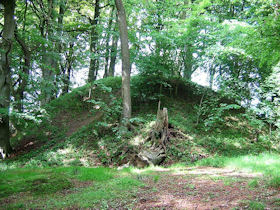 The monument includes a well preserved Norman motte and bailey castle situated in a naturally defended position on the end of a promontory formed by the confluence of the Coal and Gunnerton Burns. The conical motte stands at a height of approximately 5m and measures 30m across at the base and 10m across its circular top. There is a large hollow 3m across at the top of the motte, the result of partial excavation at the end of the 19th century. The mound is surrounded by a ditch 2.5m wide. The accompanying bailey lies to the south and east of the motte and is delineated by the steep slopes of the promontory except for a length of bank at the southernmost tip of the promontory and two broad banks 7m wide, each with a ditch 1.5m across, on the north-east side which is not naturally defended. The latter earthworks are also associated with an original entrance and causeway across the ditch giving access to the motte. (Scheduling Report)