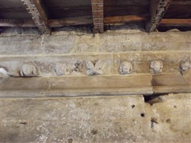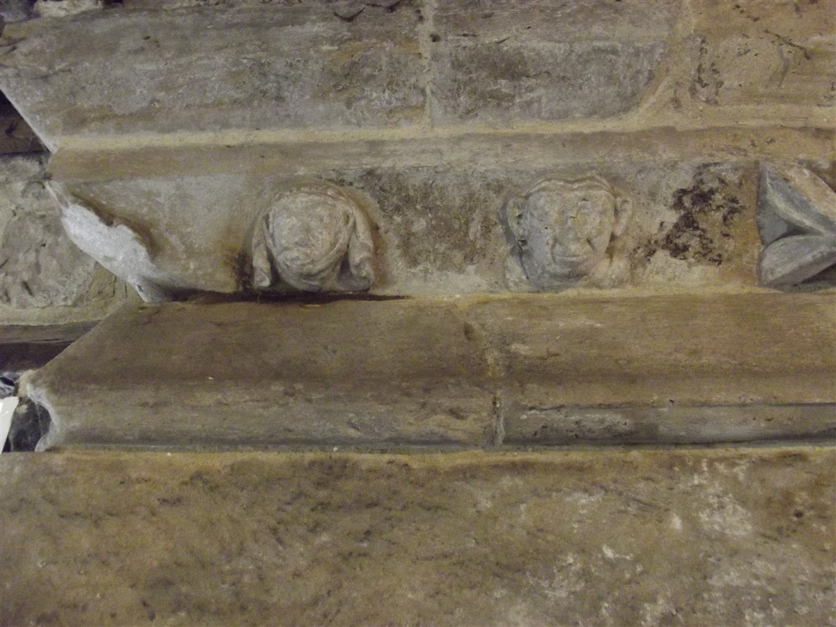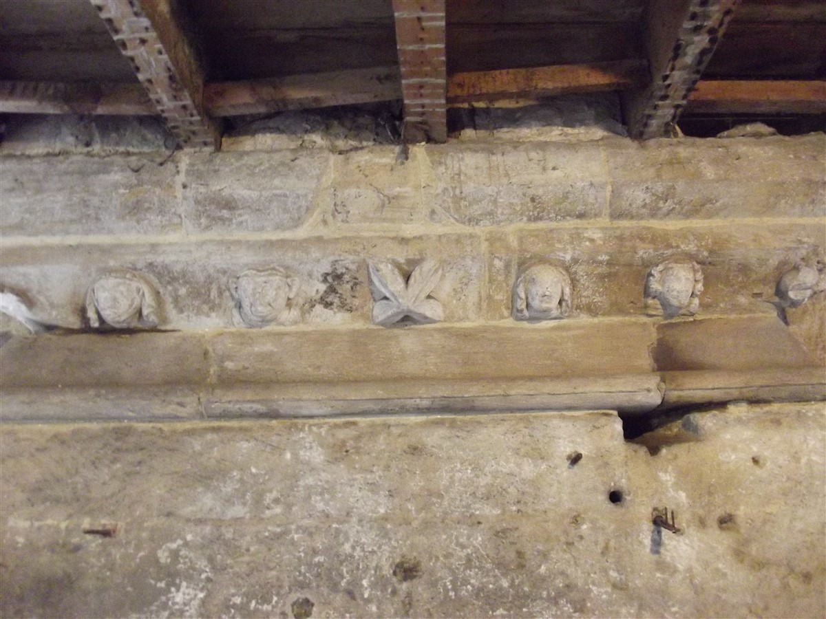 C13 parts have chamfered plinth, and eaves string with stone drain spouts. Stepped clasping buttresses to south and east, and garderobe projection at south-east corner of east wing. Early C14 crenellated parapets. Shouldered- arched doorways to hall block; door to solar undercroft dated 1653 with initials WC HC (William and Henry Collinson). Ground floor windows mostly chamfered loops; some inserted C19 sashes. External stone stair on north of hall to landing with balcony on moulded corbels; chases of 2 former canopies in stonework above. Hall doorway has double-chamfered pointed arch with moulded hood. Hall and solar have 2-light windows with twin lancet lights under pointed arches with moulded hoods; solar north window has quatrefoil in spandrel enclosing bearded mask. East wing has single-light windows, that to east with foliage hoodmould stops. Two projecting stacks on east of solar, upper parts rebuilt C20. Stack on south of hall has semicircular top with pointed vents and pyramidal cap at eaves level. North-west wing has scattered fenestration, with shouldered heads to several doorways and 2-light windows; doorway on north with lintel inscribed 1657 WC.