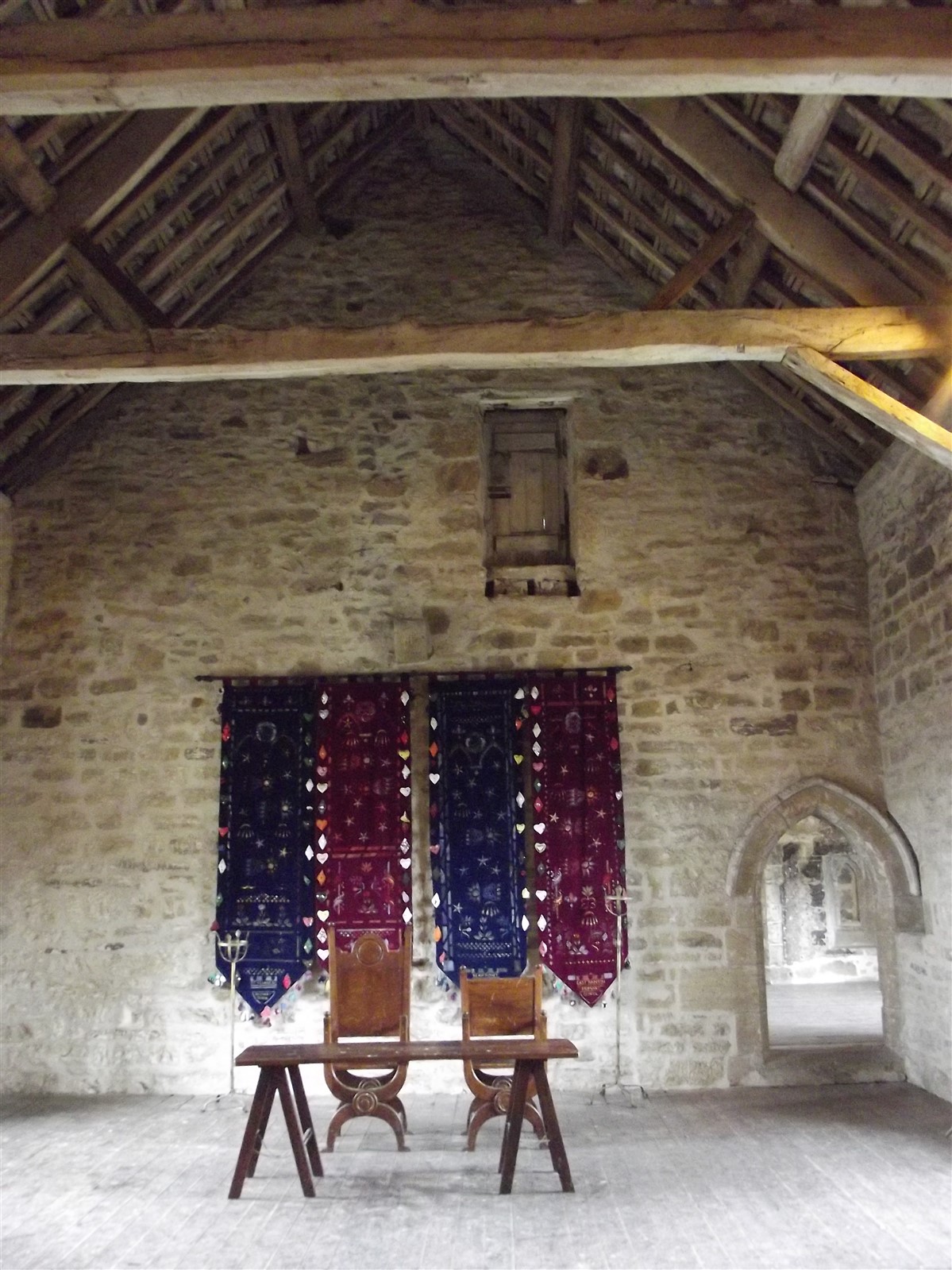 Interior: C13 parts have good contemporary fireplaces to solar and solar basement, simpler fireplace in hall basement. Barrel vault in north-west range is probably C17 insertion. Stone-walled screens passage in hall is later medieval replacement of timber partitions; chamber to west, and room above, have fireplaces with C16 Carnaby arms. Chamber in east wing with wall cupboard, sink and garderobe; further cupboards and sinks in north-west (kitchen) range. 2-light windows in hall and solar have window seats. C17 hall roof has principal- rafter trusses with collars. North-west range has roof with curved principals, perhaps C16.