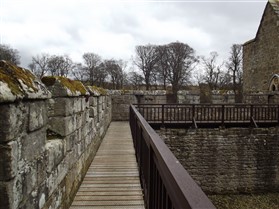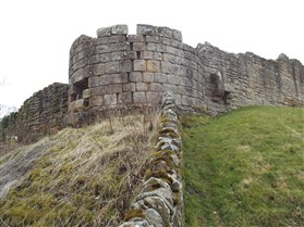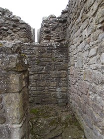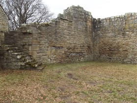 The monument known as Aydon Castle, or sometimes Aydon Hall, is a medieval fortified manor whose elements include a variety of upstanding domestic, ancillary and defensive buildings arranged within three courtyards surrounded by a curtain wall. Also included, due to the manor's conversion to a farmhouse in the 17th century, is an orchard and a range of 18th century farm buildings along the west side of the middle courtyard. The medieval defensive ditch outside the north-west curtain wall is also included within the scheduling, together with the buried remains of a timber-framed hall which preceded the construction of the fortified house. Medieval documents indicate that a timber hall existed on the site prior to c.1300. A number of structural anomalies in the chamber block of the later residence show that it was located in roughly the same area as the adjacent late 13th century hall and that part of it may still have been in use for a time after the chamber block was built. Its location has been partially confirmed by an excavation carried out within the latter which uncovered the footings of a wall beneath the floor of the building, which belonged to an earlier structure on a slightly different alignment. The chamber block housed the private apartments of the later house and it is likely that it was built to replace the demolished building. The latter is likely, therefore, to have been the solar or private rooms of the earlier hall. Further remains of this structure and other contemporary buildings will survive beneath the later hall and service ranges. The later manor house was not originally intended to be fortified. Its construction began in the last quarter of the 13th century, prior to the Border wars that characterised the 14th century. Aydon, however, was in one of the first areas to be raided from Scotland and, by 1305, when most of the buildings were already completed, Edward I had granted its owner licence to crenellate; that is, fortify his house. The earliest stone buildings are the hall, chamber block and the garderobe or latrine wing which projects from the east side of the chamber block. The chamber block was built first, but all these structures are datable to the period between c.1280 and c.1300. Between 1300 and 1305, battlemented walls were built to the north, enclosing the buildings within their own inner courtyard. The west wall formed one side of a building range which, on the first floor, contained service rooms and a kitchen and, on the ground floor, store-rooms. This range projects northward from the west end of the hall range which has three storeys containing a store-room on the ground floor, a service room in the middle and a chamber on the top floor. The east end of the hall is two-storeyed and consists of a spacious room on the first floor and a less comfortable room of similar size below. The latter room, the lower hall, contains a fireplace and connects with the store-rooms of the manor, showing it to have been a servants' hall. The upper room, lit at the east end by tall windows equipped with seats, was the lords' hall or public chamber and had access, behind the high table, to the upper floor of the chamber block. This contains an original fireplace, moved from the east wall to the west wall in the 16th century, and opens onto the upper storey of the garderobe wing. The ground-floor of the chamber block contains an elaborate carved fireplace which suggests that this chamber also originally served as a private room, though, later, it seems to have functioned as a hall for the lords' personal attendants. Following the king's licence, parapets were added to the domestic buildings and the inner courtyard wall. The construction of the outer courtyard was also begun and was complete by 1315. It is not known precisely when the vaulted D-shaped tower at the north corner of the site was built but, owing to differences in the method of construction, it is believed to be later than the curtain wall and probably dates to the mid-14th century. The curtain wall appears never to have been a strong defensive line, heavier reliance being placed on the sheer slopes which encircle the manor on the south, west and east sides. The remaining north-west side was enclosed by a ditch that measures up to 15m wide and 5m deep. However, because there was no gatehouse at the castle entrance, merely a simple entrance arch apparently without drawbridge or portcullis, even this could not have satisfactorily protected the manor; a factor which may have contributed to its being rapidly surrendered to the Scots in 1315. Internally, the south-west corner of the outer courtyard was divided off to create the middle courtyard which contains, along the south curtain wall, the fragmentary remains of a two-storey range of buildings whose upper floor was lit by windows in the curtain wall and has been interpreted as lodgings for servants or guests, or possibly for men-at-arms. A similar arrangement existed on either side of the gate along the north-west curtain wall, and, in both cases, the unlit ground-floor rooms would have served as barns or shelter for livestock and horses. In the 16th or 17th century, the eastern part of the outer courtyard was divided off to create an orchard, and, also in the 16th century, the lower hall was partitioned to create several smaller rooms while the ground floor of the chamber block was converted into a kitchen; a function it retained into the 20th century. 17th century alterations include the subdivision of the east end of the hall to create new living quarters, and the conversion of the medieval kitchen wing or agricultural purposes. Further modifications were carried out in the 18th and 19th centuries when the manor became a farmhouse on the Matfen estate. These include the construction of a range of farm-buildings in the middle courtyard and the insertion of new windows in the living areas. In addition, the medieval hall was divided to create additional sl