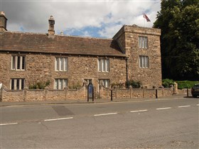 House with tower. Original house C13 or early C14, service end heightened as tower in mid to late C15, main block remodelled in later C16 and again c.1675. Restoration and major extensions to rear c.1890. Roughly-squared stone and rubble with cut dressings; stone slate roofs.