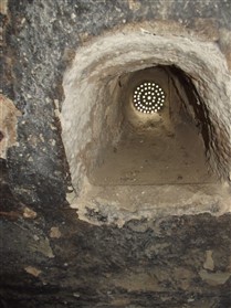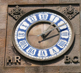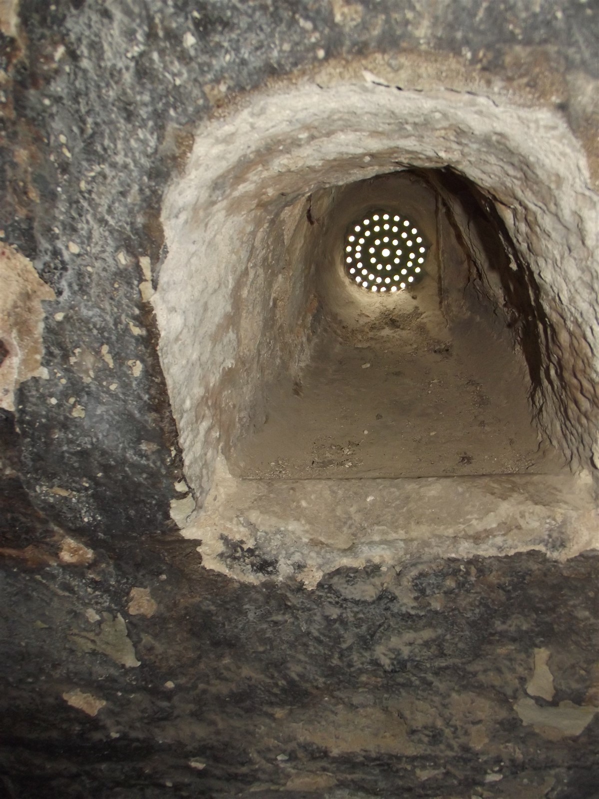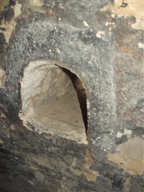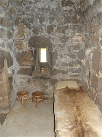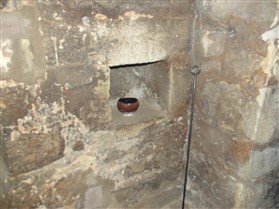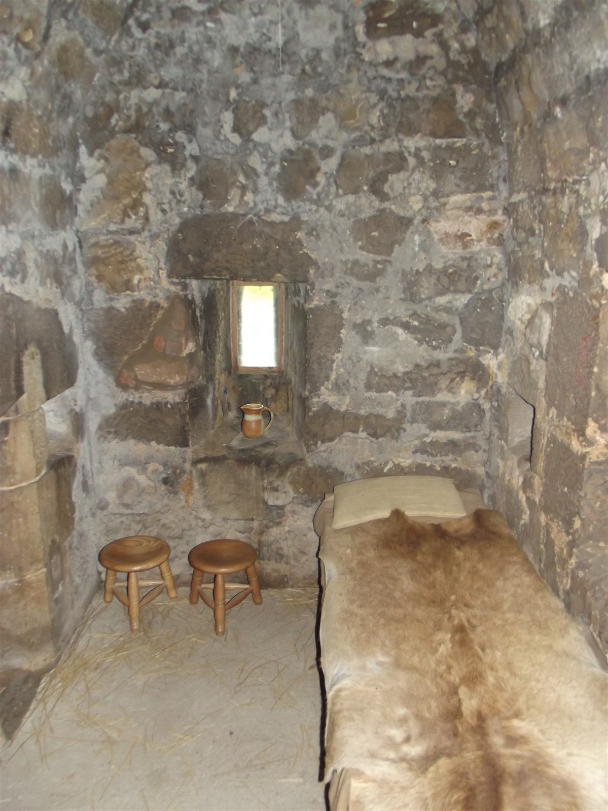 The vaulted rooms on the first floor of the turrets are provided with fire- places. A water-tank now nearly fills the vault in the south-west turret, but there is a good plain fire-place still intact in the east wall. The fire-places on the second floor have both fallen away. A moulding has been worked on the east jamb of the fire-place in the south-west turret. At the top of the south-east turret is a room about 8 feet square inside, with rubble walls, probably of the sixteenth century. A similar room in the south-west turret contains the bell on which the clock strikes. The roof of this room has been removed for the purpose of obtaining a better view from the battlements. At the south end of the second floor of the main block is a fine window recess, like some in Warkworth donjon, 5 feet 2 inches in width and 7 feet in height to the springers of the the low arch. The recess is now filled with the clock face, but is said to have formerly contained a square-headed transomed window of two cusped lights. (Bateson 1895)