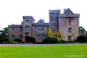 Towerhouse, built after 1584, with irregular later additions.