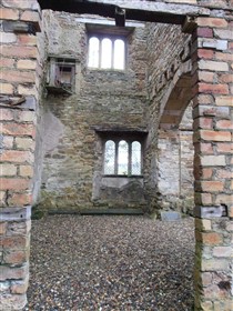 Only the west service range and the adjacent section of the north range today remain roofed and in use. The remainder of the building is a decaying and rather overgrown ruin. The principal medieval survival is the east wall of the main block, which is still 1.4m thick, although obviously cut back internally; this is the east wall of the original tower, which from old map evidence seems to have measured c.14m north-south by c.15m east-west. The only old feature visible in the wall is part of a circular arch visible internally; this might have been the original entrance to the tower. Medieval walling - up to 2m thick - also remains in the external walls of the service court ranges. This would appear to represent the north west corner of the outer wall. In recent years footings of thick north-south walls have been seen in the service court (presumably the west side of the main tower) and to the south of the mine agent's house (part of the eastern outer wall).
