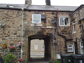 Archway Cottage on the south side of Main Street, adjacent to east side of the Manor House Hotel. This is clearly a bastle house, 8.9m by 6.5m externally, with walls c.1m thick. The front elevation is rendered, but the original square headed byre entrance doorway survives in the centre of the east gable; it is now blocked, but is clearly visible from the adjacent covered entry. Old beams inside; the attic (not seen) is said to preserve a section of an old winder staircase and old roof trusses. The building seems to have been remodelled in 1740, the date on the lintel of the present front door (Ryder 1994-5). (Northumberland HER)