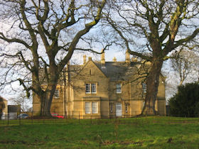 House, 1834 for Robert Ormston, extended in late C19. Ashlar, except for squared stone to rear; slate roofs. Irregular plan. Tudor Gothic style. Entrance (east) front 2 storeys, 3 bays. Plinth, moulded 1st floor string. Central bay has part-glazed door under 4-centred moulded arch in square frame, with hoodmoulded stepped over foiled panel above, and flanking narrow sashes; 12-pane sash window over. Gabled flanking bays set slightly forward have bay windows with paired 12-pane sashes and single 12-pane sashes above. Narrow lancets in gables, which are coped, with finials and elaborate kneelers. All windows in hollow-chamfered surrounds, those on 1st floor with hoodmoulds. Moulded eaves cornice in centre bay. 2 stepped and corniced ridge stacks, with triple conjoined shafts.