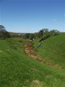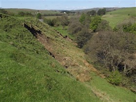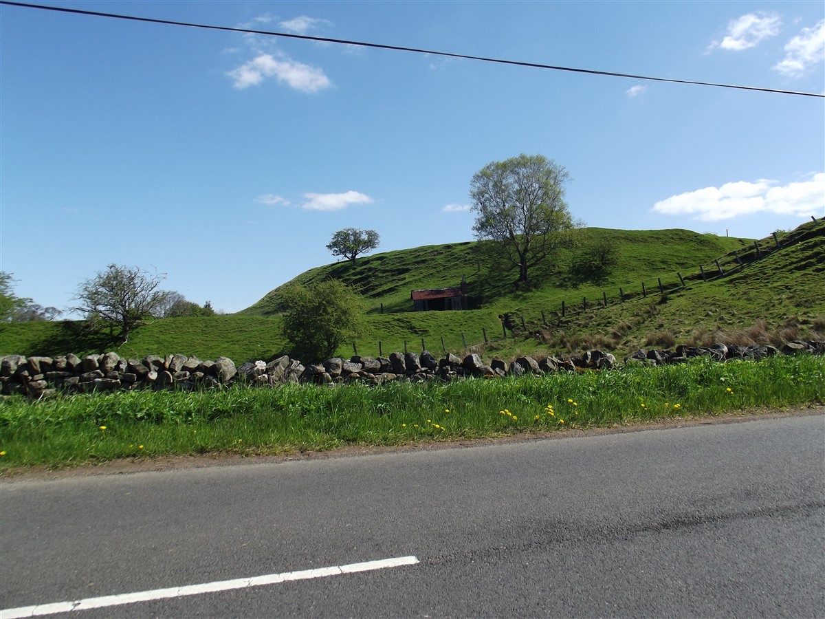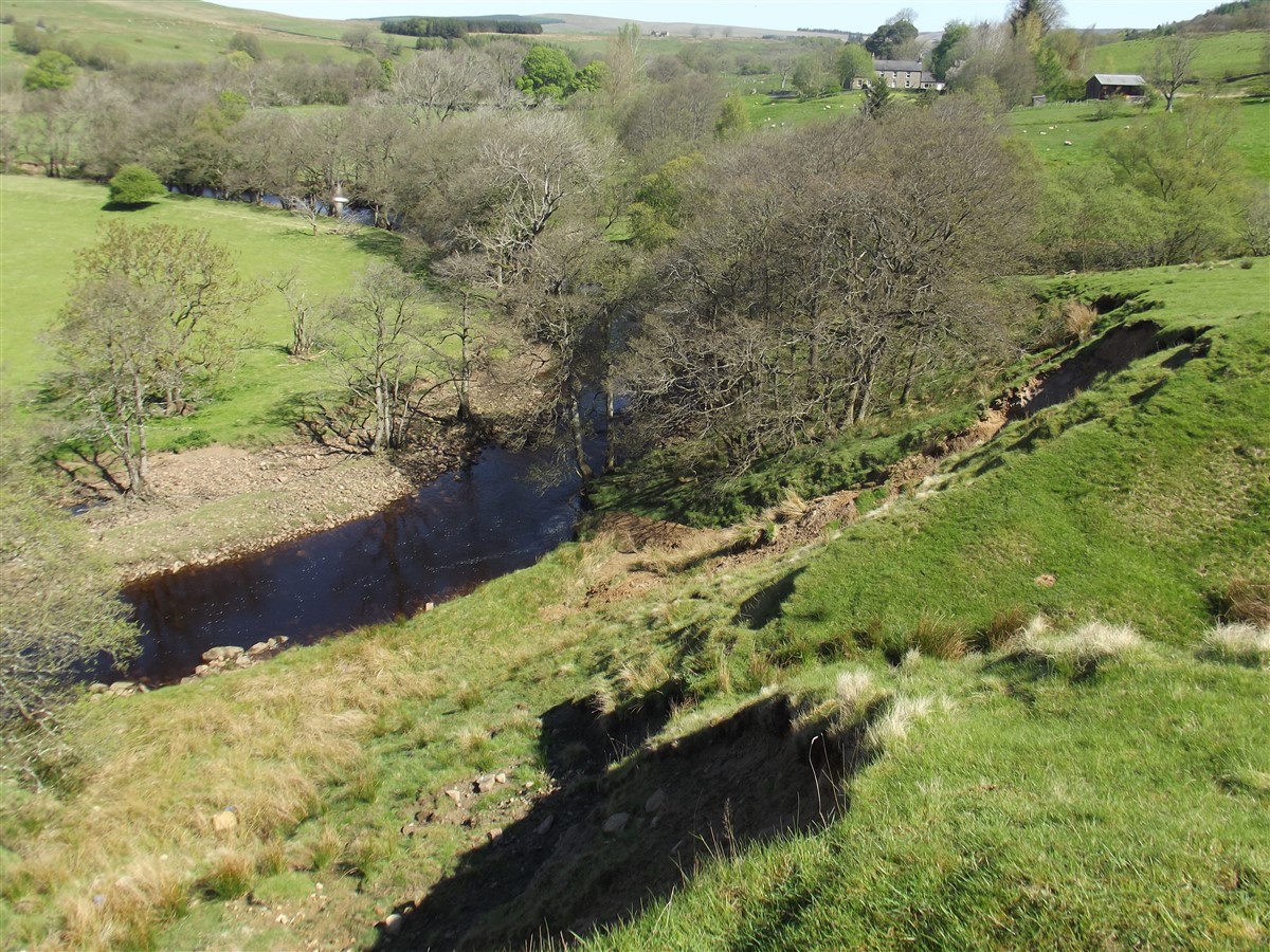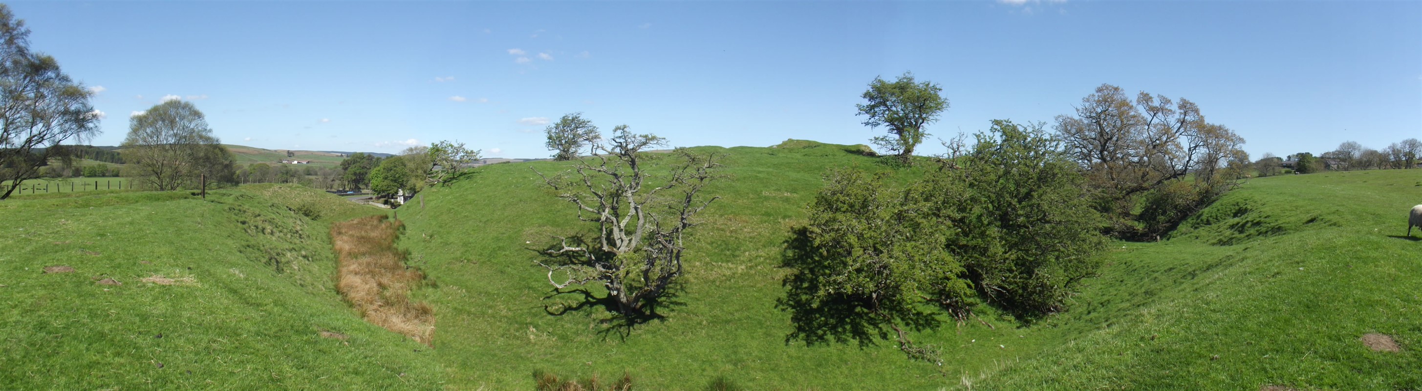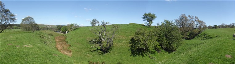 The remains of the castle are situated upon a steep-sided promontory which points westwards and which commands the valley of the Tarset Burn to the north, and the valley of the River North Tyne to the west, south and east. The promontory is cut off from the rising ground to the east by a broad deep ditch, 22.0m wide, and of an average depth of 5.0m. The southern end of this ditch has been destroyed by the construction of a railway cutting.