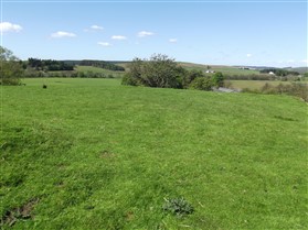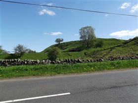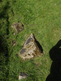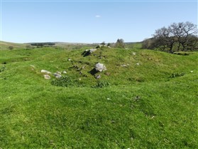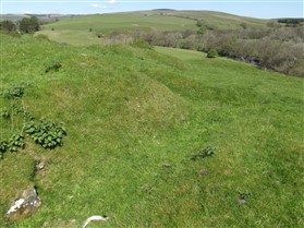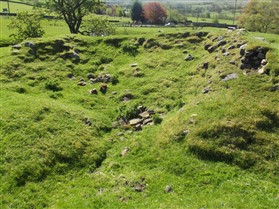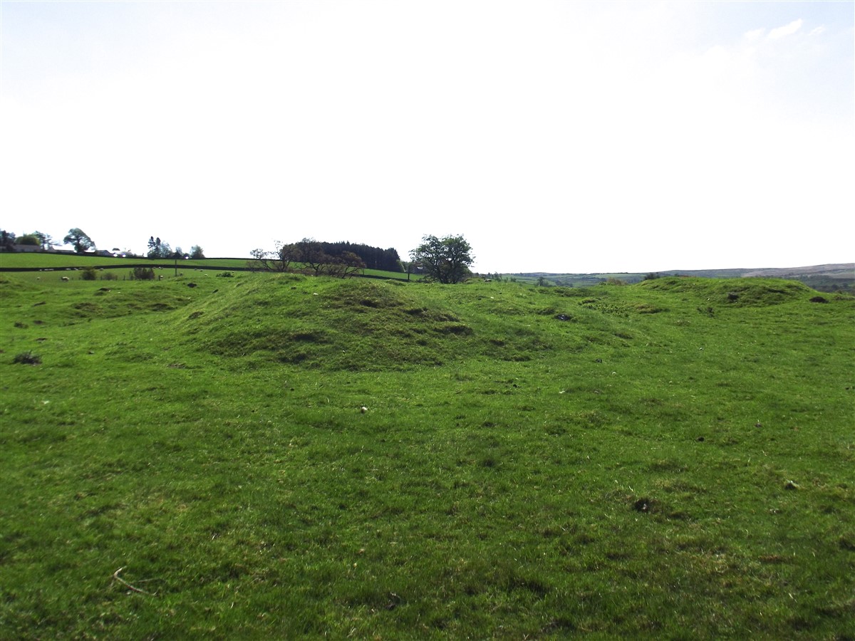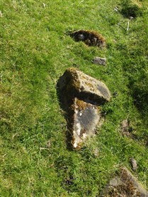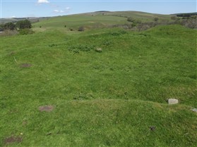 Upon the east side of the site, are foundations of a building, of which the south end and NE corner are exposed, and stand to a maximum height of 1.5m. The rest of the site has been subjected to ravaging for stone and is covered with pits and spoil heaps, now turf covered. (First Ordnance Survey Archaeology Field Investigator 04/07/1956).