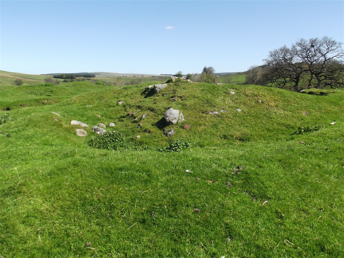 The monument was partly explored by excavation in 1888 but no records of the findings were left. It is thought that there is a timber palisade on the inner edge of the ditch and that there must have been a bridge across the ditch to give access to the house. (Scheduling Report)