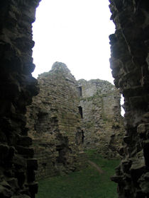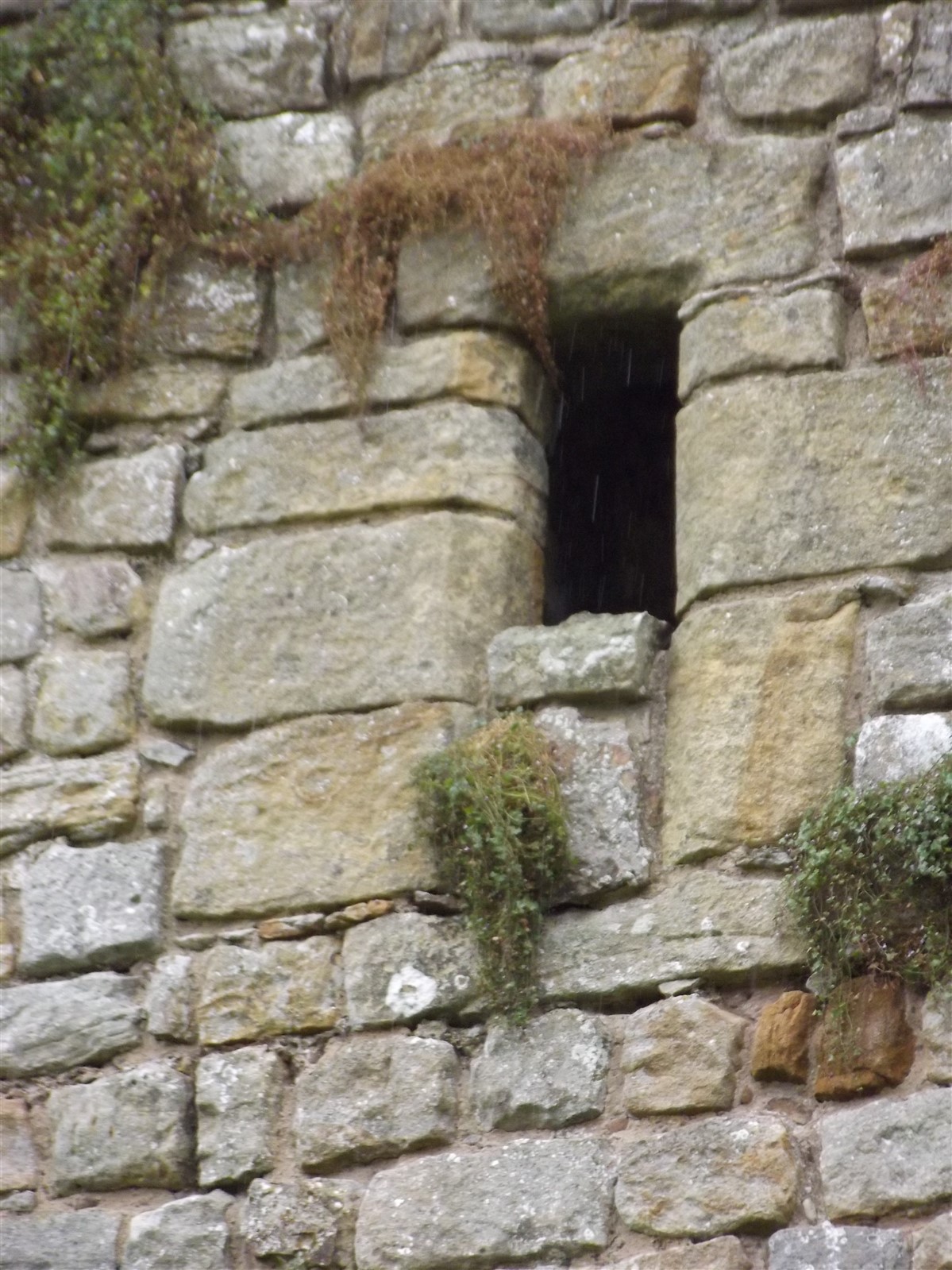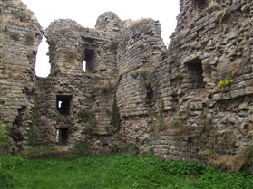 building, and it is not possible to say whether there was a full floor or just an attic. More remains in the south east tower, where there is a window in the south wall with a trefoiled head and the remains of a shouldered rear arch, with a couple of broken corbels surviving above for the fourth floor or roof timbers; a ragged gap may indicate a second window opposite. Once again, there are indications of mural chambers at the eastern corner; prior to the 1980s collapse part of the east wall on the southern remains, together with one jamb of its doorway.