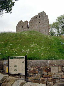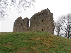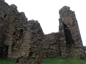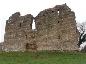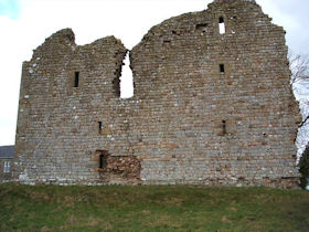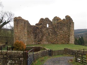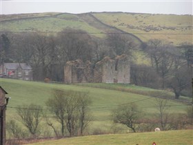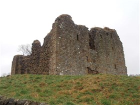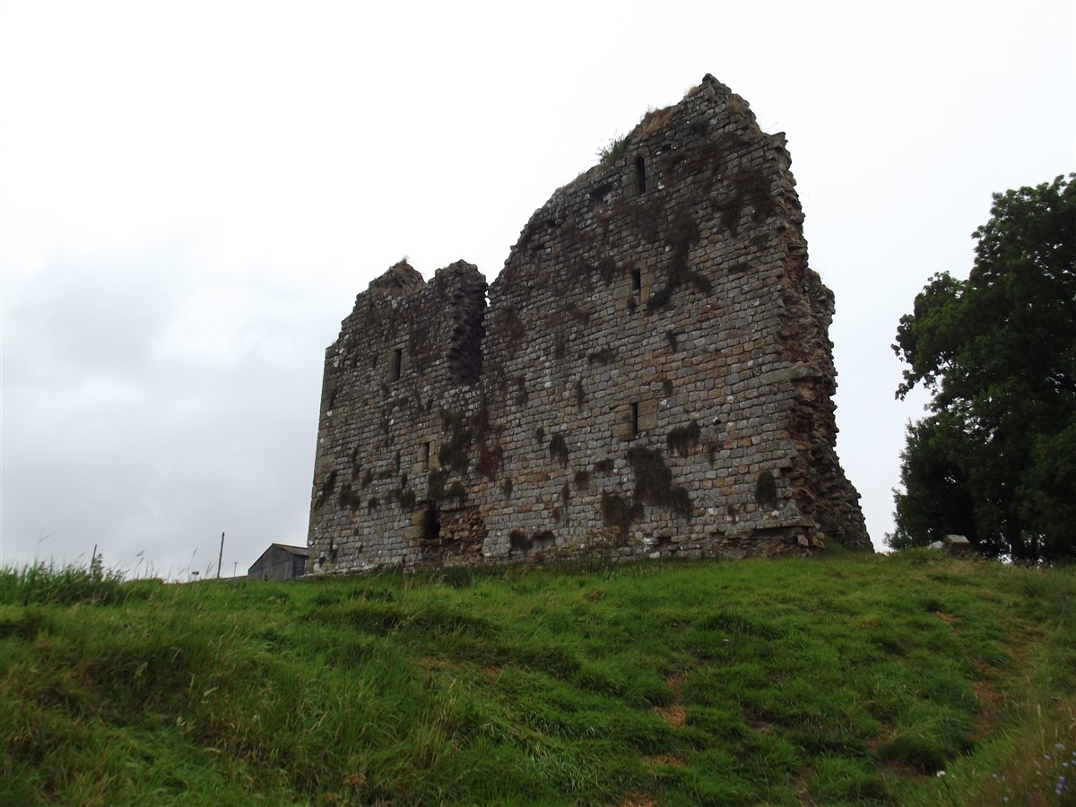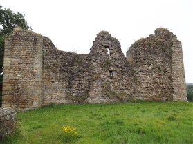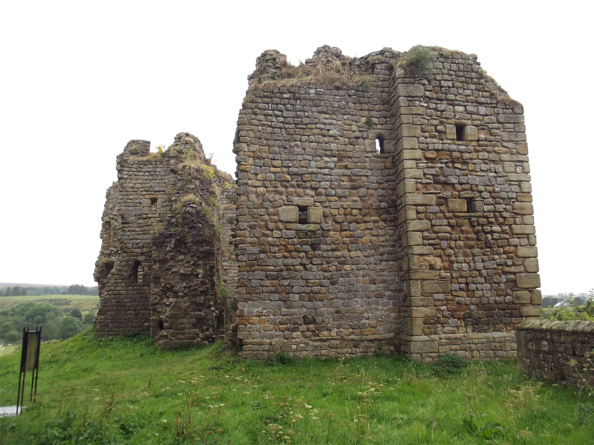 Mid-C14 castle surviving as a ruined building, largely built of stone robbed from Hadrian's Wall. Rectangular plan with slightly-projecting north-east tower. 2.5 to 3m thick walls standing to 2 and 3 storeys on north and west; east wall of similar height has partly collapsed at south; south wall has almost entirely collapsed. Fragments of chamfered plinth. North-east tower and corners have huge squared quoins. Scattered loops in flush surrounds with squared alternating jambs. No remains of vaulting. In dangerous condition at time of survey. (PastScape)