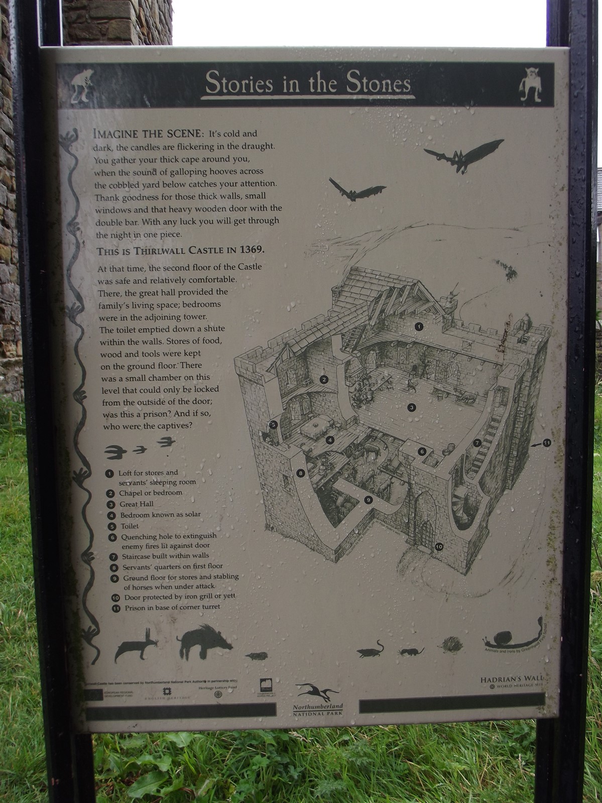 The tower was described in good reparations in 1542; the will of Lancelot Thirlwall dated 27th December 1582 refers to the 'low parler' and 'the hie loft over the hall'. In the Civil War Thirlwall was garrisoned by Scots forces and it seems likely that the Thirlwalls did not return but settled instead at Newbiggin near Hexham. In 1738 Eleanor, the Thirlwall heiress, married Matthew Swinburne who sold Thirlwall to the Earls of Carlisle.