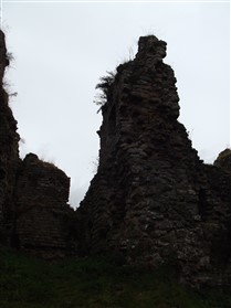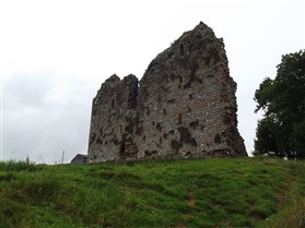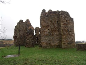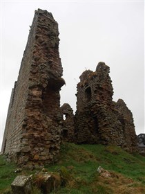 Castle ruins. Probably mid C14. Masonry largely re-used from nearby Hadrian's wall: dressed stone facing to rubble core. Rectangular plan with slightly projecting north-east tower. 2.5 to 3.0-metre thick walls standing to 2 and 3 storeys on north and west; east wall of similar height has partly collapsed at south; south wall has almost entirely collapsed. Fragments of chamfered plinth. North-east tower and corners have huge squared quoins. Scattered loops in flush surrounds with squared alternating jambs. No remains of vaulting. In dangerous condition at time of survey. (Listed Building Report)