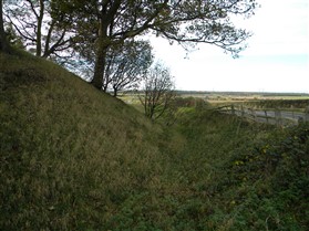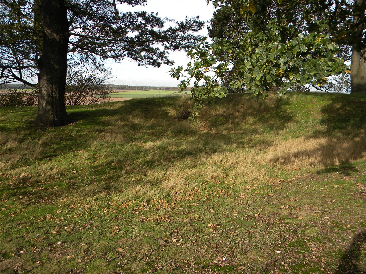 A motte situated in an outstanding position with excellent all round visibility; the feature has a maximum height of 4.8m and is in relatively poor condition, quarrying having in part disturbed the profile. The top is saucered to a maximum depth of 1.8m and now supports a small copse of bush and oak, no building remains are evident. The immediate adjacent areas south, east and west have been extensively quarried for gravel - not agriculture as suggested by Blagg - and a former bailey cannot now be traced; however the situation of the mound, together with local topography, leaves no doubt that a bailey or court formerly existed. To the north a modern E-W road grazes the motte, north of the road extensive cultivation has destroyed any feature that might have formerly existed. The name "Bothamsall Castle" is still in local use. The lack of early recorded history suggests a possibly Adulterine origin. (PastScape ref. Field Investigators Comments–F1 FDC 01-APR-74)