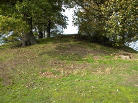 Medieval motte and bailey castle, thought possibly to be of adulterine origin, motte is in quite poor condition having been quarried away in places, there is no trace of the former bailey. The mound is about 150 yards in circumference, with a parapet at the top, 70 yards in circumference. The motte is 4.8 metres high. (PastScape)