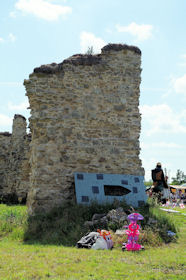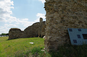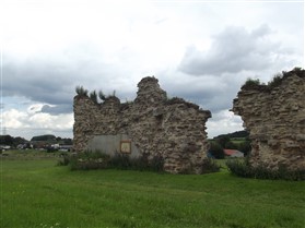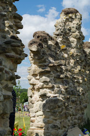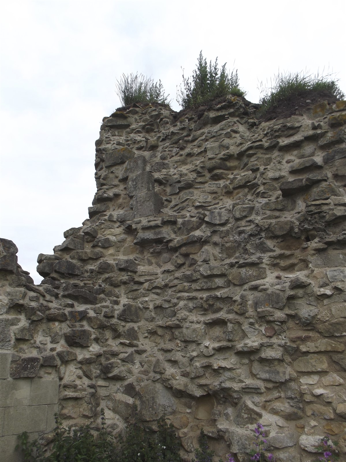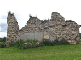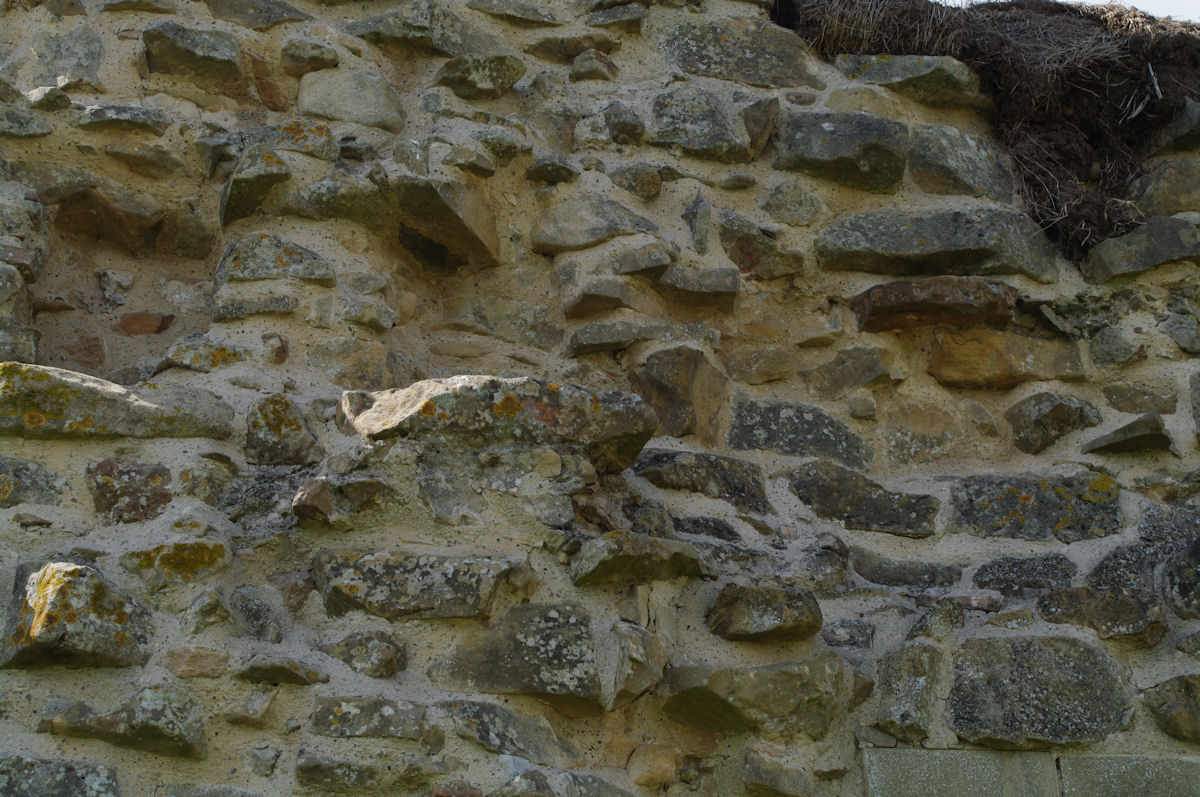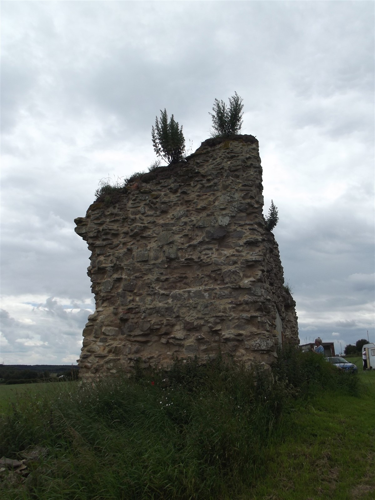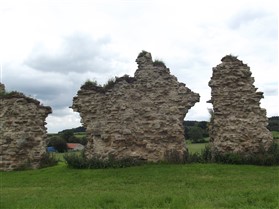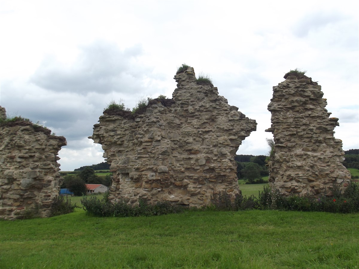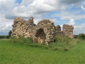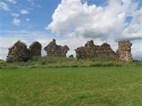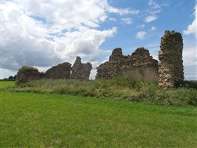 The ruins stand in land atop a SE facing slope, and comprise in the main only the stone rubble core. No traces of the ditch are to be seen on the surface, and the fish pond to the E has now been filled in, apparently by the county council. (PastScape ref. Field Investigators Comments–F1 BHS 25-MAR-74)