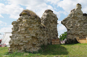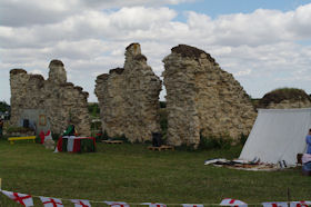 A large, important and significant palace of the Plantagenet kings. Unfortunately described as a 'hunting lodge' by Colvin in the History of the King's Works and by Rahtz which may have lead to its importance as a royal palace being overlooked. Excavation by Time Team in 2011 found probable chapel foundations. Pottery expert Paul Blinkhorn pointed out the C15/C16 pottery finds were of drinking vessels only, with no cooking or eating vessels of this date. He associated these with the demolition of the buildings circa 1470-1530. Outside of the scheduled area it is likely that standing medieval walls, incorporated into more modern houses in the village, represent the recorded gatehouse. The Wikipedia entry as of 14 July 2012 (mainly authored by archaeologist James Wright) is an outstanding online resource and should be consulted. It is likely (if not maliciously interfered with) to remain the easiest to access quality resource until James Wright and Andy Gaunt can publish a monograph. The promised monograph was be published June 2016 at A Palace For Our Kings