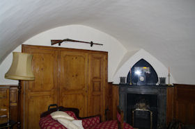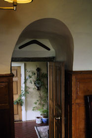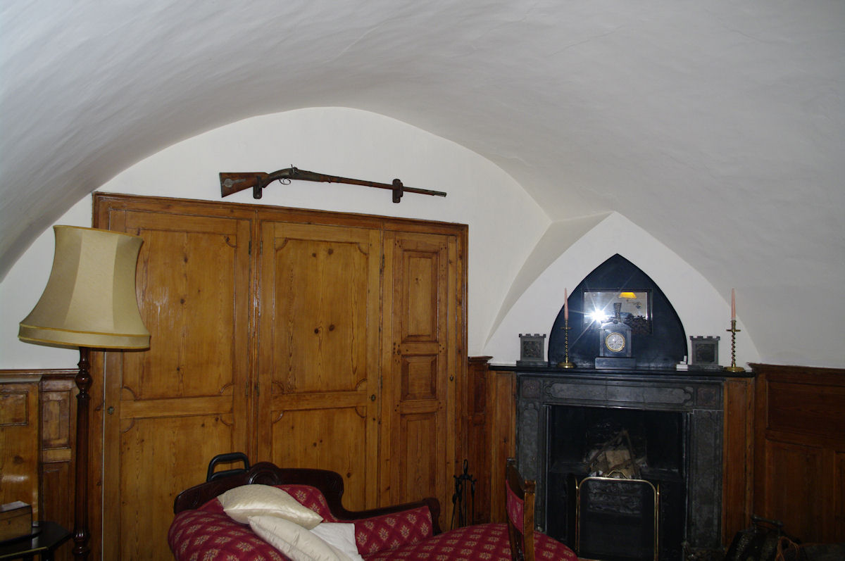 Strelley Hall conceals a barrel-vaulted room in its south-west corner incorporating the ground floor of a medieval tower... It is uncertain whether or not the tower was a stand-alone structure, but the residence must have been an extensive one if the buttressed sandstone walls of the present outhouses were part of its outbuildings. ... It is likely that the tower was part of a fourteenth-century rebuilding. (Emery)
