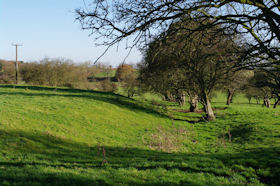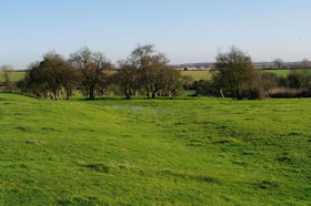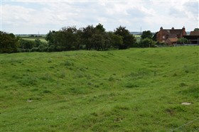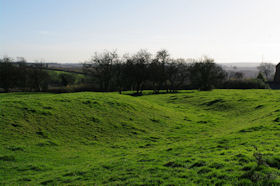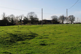 Medieval ringwork castle, consisting of a bank and ditch with an entrance on the south west side. There is evidence for a fortified manor house here from about 1252, when Jordan Foliot was licensed to embattle his manor house, although no trace of this is now visible. The interior of the ringwork contains traces of ridge and furrow. The earthwork remains of a hollow way and fishpond also survive. (PastScape)
