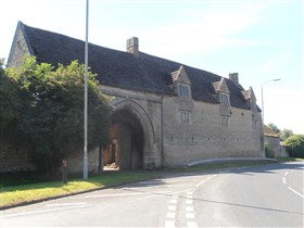 The gatehouse had neither portcullis nor drawbridge, but, such as it was, it was relied on, together with the surrounding walls and buildings to protect the house. Bridges speaks of the 'noble gatehouse with spacious stone arches and mouldings, and chambers over it'. The chambers and vaulting are gone, but the circular stairs remain, leading to a delapidated loft. He also mentions stone stairs in the house, and a window 'at the E end, now almost filled up, where probably was formerly a chapel', but there is now nothing by which this part of the building can be identified. Built in 1330 - 1340 by the de-la-Mare family. The gatehouse and hall is all that survives from a major manor house. The gatehouse has a slightly lower roof line and has large moulded and chamfered arch through. Inside there is a narrow bay, formerly rib vaulted, separated from the larger rib vaulted S bay by a cross wall with an arched carriageway and a pedestrian way. Northborough Manor was built by Roger de Northburgh, Bishop of Lichfield, in 1335. The house had a great hall with separate private apartments at one end, an imposing gatehouse and various other buildings. It was originally intended to be larger, but Roger had difficulties with the builders. A stone gatehouse of the same period as the manor house (early C14), to which a range of C17 buildings have been added (not scheduled). The carriageway of the gatehoue is in two sections a section by a vertical wall, pierced by cat and mouse doorways also with pointed arches. A further large pointed arch gives access to the courtyard. Both sections have had quadripartite vaults, but only the springings remain. The E section of the gatehouse contains a small porter's room and a circular stair leading originally to a room above this, but, since the removal of the vaulting, to a loft running the whole width of the gatehouse. Stonework in reasonable condition, some repair work evident, but this does not seem to be of a recent date. String course on NW side is damaged. Roofing slates are in poor condition, covered in moss and slipping badly in some areas. (City of Peterborough HER)
