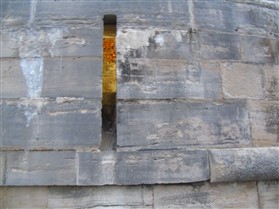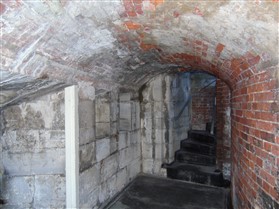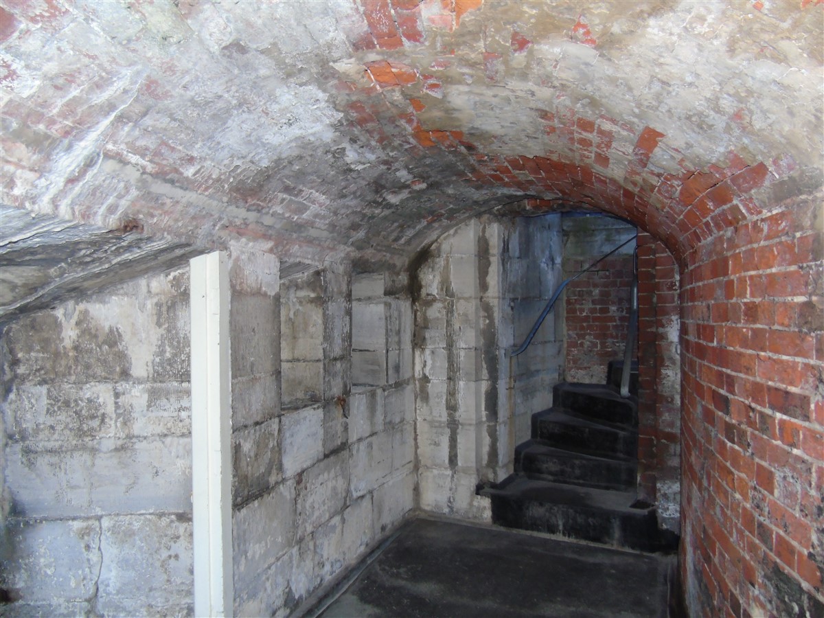 Eighteen Gun battery and Flanking battery are part of the last phase of De Gomme's scheme, reconstructed 1847-50, when casements deepened and upper tier added to the flanking battery. The seaward walls were all refaced in ashlar at this time. (Hampshire Treasures)