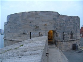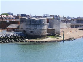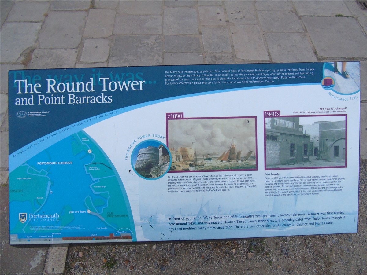 Between 1416 and 1422, £1069.9s.8 1/2 was spent on building a tower 'for the safe keeping of the King's ships', and constructing a wharf at 'Childrode' (Gosport) as a foundation for a second tower. The intention was to use a raisable chain to close the mouth of the harbour against enemy shipping. The Round Tower had to be protected from the sea by rocks secured by wooden piling. During Elizabeth's reign, every vessel plying between Portsmouth and the Isle of Wight was required to bring one boat-load of stones per annum and 'boye them within the pyles of the Round Tower' or pay a 2s fine (HKW).