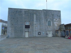 The Square Tower fortification and Governor's residence, now museum. c1494, extensively altered to form a powder magazine c1580 and then the Admiralty Victualling store c1780, reinstated as part of the fortifications mid C19; restored 1978-1985. Stone and brick. Flat stone paved roof with 3 restored mid C19 gun races facing south-west. EXTERIOR: south-west part 1 storey and north-east part 2 storeys. 2 bays. Main entrance facing south-east within enclosed yard has on right a 2-leaf late C20 copy of the original C18 doors with lower panels and vertical iron bars to upper panels set under a segmental stone arch with rusticated voussoirs and jambs. On first floor is a mid C18 2-leaf 20-pane casement. To left at saluting platform level is a late C20 boarded door leading to roof area and to late C20 visitors' viewing balcony. North-west facade has on left a late C20 boarded door set within C15 opening. On right is an C18 2-leaf casement set within C15 opening and further right is a late C20 replica of the original C18 panelled door with vertical iron bars to top panel. First floor has on left a mid C19 2-leaf 4-pane casement and on far right a late C20 glazed infill. On north-east side facing Broad Street is a niche edged with a wreath. This contains a late C20 copy of a gilded lead bust of Charles I by Hubrecht le Sueur (original restored and now deposited in the City Museum). Below are the Royal Arms on a small bracket and the inscription reads "After his travels through all France into Spain and having passed very many dangers both by sea and land he arrived here the 5th day of October 1623". INTERIOR: the late C20 restoration has uncovered Tudor features including two fireplaces and C18 features which include a stone stairway on north-east side running from ground to former basement. (Listed Building Report)