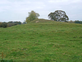 However vestiges of the southern rim of the mound survive showing that in its original form it was a roughly circular earthen mound 25m in diameter at its base. The summit of the mound stands up to 3m above the level of the lower platform and would have originally been circular with a diameter of approximately 16m. The berm which has been created between the central scarp and edge of the lower platform varies in width between 10m around the south side, and 5m around the north. A timber palisade probably once ran around the outer edge of the berm, forming an inner ward between it and the motte keep.
