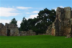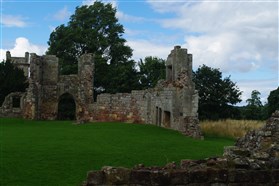 Moreton Corbet is a fine example of a post-medieval country house which Pevsner has described as being 'amongst the most impressive and consistent designs in the country'. The standing remains are a rare survival of a bold and imposing design, and will retain evidence for the method of construction and ornamentation of the mansion. Evidence for the original layout and extent of the south range, and for the slightly earlier east range it incorporated, will survive below ground. The earthwork and buried remains of the formal gardens further demonstrate the high status of the site, and illustrate the importance of symmetry as an architectural device in landscape planning of this period. Formal gardens, combining massive earthworks with exotic and intricate planting, were in vogue between the mid-16th and early 18th centuries, and their extent and design reflect not only artistic aims and changing fashions but also the social aspirations and status of their owners. At Moreton Corbet evidence for the method of construction will survive in the earthwork remains of the walkways and prospect mounds, and evidence for the original symmetrical arrangement of features such as flower beds and paths will survive as buried features. The monument is of additional interest because of its development from an earlier medieval castle, and evidence for the various phases of its construction and modification will be preserved in both the standing remains and as buried features. Enclosure castles were the defended residences of leading medieval families, built mainly of stone, and protected principally by surrounding walls and towers. Although some form of keep often stood within the enclosure, this served mainly to provide accommodation rather than defence. Outside the walls, a water-filled or dry ditch was often created, with access via one or more bridges