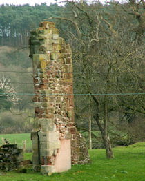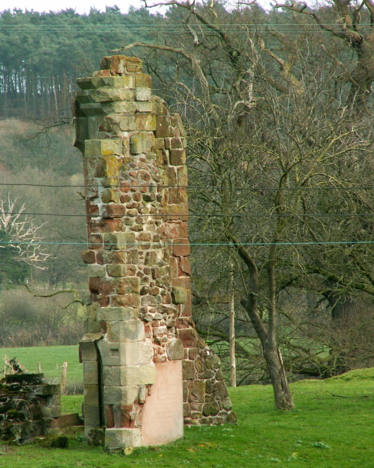 It functioned as the Court House and the head farm of the demense - the land under the direct control of the lord of the manor. John Leland visited the castle in about 1540 and described it as 'veri ruinous'. An earthquake in 1688 is said to have led to a partial collapse of the structure. Myddle Castle was constructed on a gentle east to north east facing slope, in an area of undulating land. Little now survives of the moat as a visible feature, but the earliest large scale Ordnance Survey map (published in 1881) shows that all the arms contained water and were between 8m and 14m wide. The moat defines a rectangular island approximately 42m east- west and 48m north-south (maximum dimensions), with a later entrance causeway across the northern part of the western arm. Material excavated from the moat was used to raise the surface of the island up to 1.8m above the level of the surrounding land. All the moat arms have been subsequently drained and infilled. The southern and western arms survive as buried features and are included in the scheduling. The opposing arms have been affected by the insertion of a late 20th century farm building, walls and a yard surface, and hence are not included in the scheduling. In his account of Myddle produced at the beginning of the 18th century, Richard Gough describes the castle as a series of 'rooms' set round a courtyard with a gatehouse at the north eastern corner of the site. He notes a possible kitchen range on the eastern side, a parlour on the southern side and a hall on the western side. The early Ordnance Survey map (published in 1881) also provides some evidence of the castle's building plan. Two extant retaining walls are set at right angles along the southern and eastern sides of the island, together with the remains of a stair turret opposite the moat causeway. The extant walling is shown joining the foundations of other walls. This map indicates that the size of the castle building, excluding any ancillary structures, was about 32m east-west and 42m north-south. A small scale archaeological excavation undertaken in 1966 confirmed the extent of the castle structure and concluded that the principal living quarters lay on the western and northern sides of the island. These ranges, together with the stair turret, are shown in ruins in 18th and 19th century illustrations. The upper battlemented portion of the turret collapsed in 1976. All the visible castle walls are built of dressed blocks and neatly coursed. Red and white sandstone has been used which probably came from the quarries at Grinshill, 5km to the east. The stair turret stands as the most prominent feature on the site and was restored in 1849 and 1982. The moulded trefoil- headed doorway with panelled spandrels provided direct access to the stone newel stair, the first few steps of which survive. To the south of the stair turret the remains of a large rectangular window opening at first floor level confirm the existence of a hall on this side of the castle. A large sandstone block inscribed with the le Strange crest has been placed next to the remains of the stair turret. (Scheduling Report)