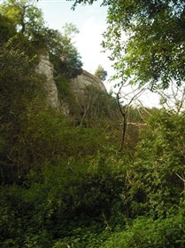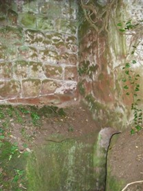 Around the perimeter of the southern ward there are three circular mural towers. The one at the south western corner of the ward stands to a height of 1.5m. It is built of sandstone blocks and is partly cut into bedrock. It is of similar constuction to the tower built close behind the curtain wall at the south eastern corner of the ward. This tower stands to a height of 2m. The rock-cut base of the third tower on the eastern side of the ward occupies a similar position close to the curtain wall, and lies adjacent to the remains of a rectangular rock-cut building. Further to the north, close to the rock-cut ditch which separates the wards, are the remains of other structures, including a probable gatehouse, which would have provided access, with a drawbridge, to the north eastern ward. An adjacent flight of steps leads down to a narrow causeway at the end of the rock-cut ditch which separates the wards. A tunnel cut through the causeway, which may have been enlarged in the 18th century in order create the Lion's Den, probably served as a postern (a minor entrance/exit passage) in the medieval period. From the narrow causeway a further flight of steps leads up to the north eastern ward. Adjacent to these steps is a small rectangular rock-cut chamber. At the northern end of the ward are the remains of two circular mural towers, both constructed of sandstone. One stands to a height of 1m. The other is about 6m high and contains a narrow window opening, or arrow loop, and lies near another rock-cut building. On the western side of the north western ward a flight of steps leads down to the middle of the three northern wards.