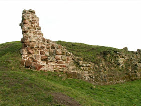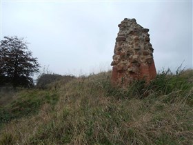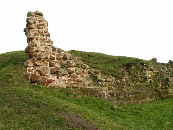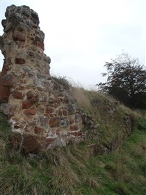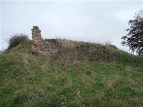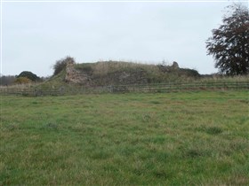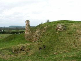 The motte and bailey existed before 1165, as expenditure on repairs is recorded after 1165 and it was rebuilt in 1220. There are fragments of a square keep on the motte, mainly rubble, apart form an ashlar face with partly buried relieving arch. Both this and other stonework found on the site may be C12 (Renn 1973)