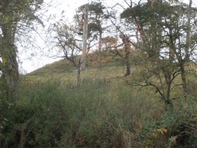 A collapsed stone building on top of the motte at Wilmington appears to have been a viewpoint or a gazebo. On a ridge. The motte is 14ft high and 25ft across the top and is surrounded by a bailey. Both motte and bailey have been damaged; the motte ditch has been filled in, and the defences of the bailey, apart from a 6ft scarp to the N, have been erased, though their line is still traceable. A steep sided spur to the S of the motte may have formed part of the defended area (King and Spurgeon 1965)