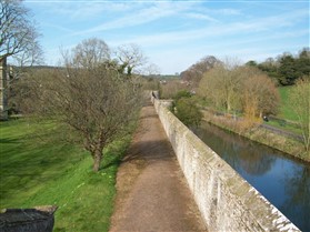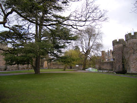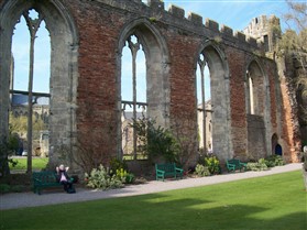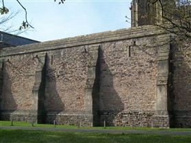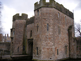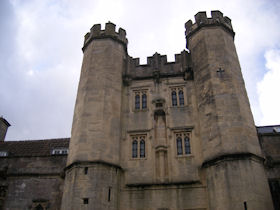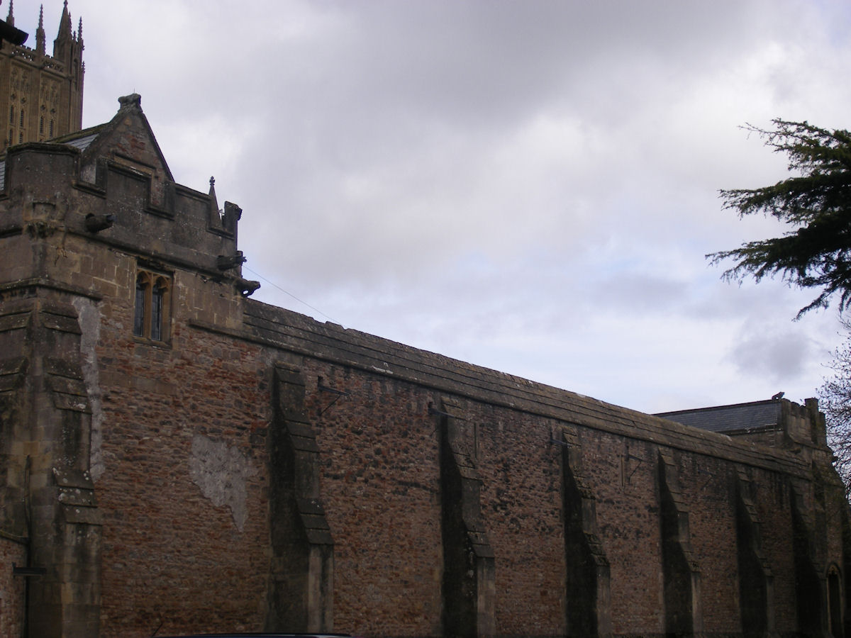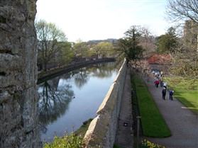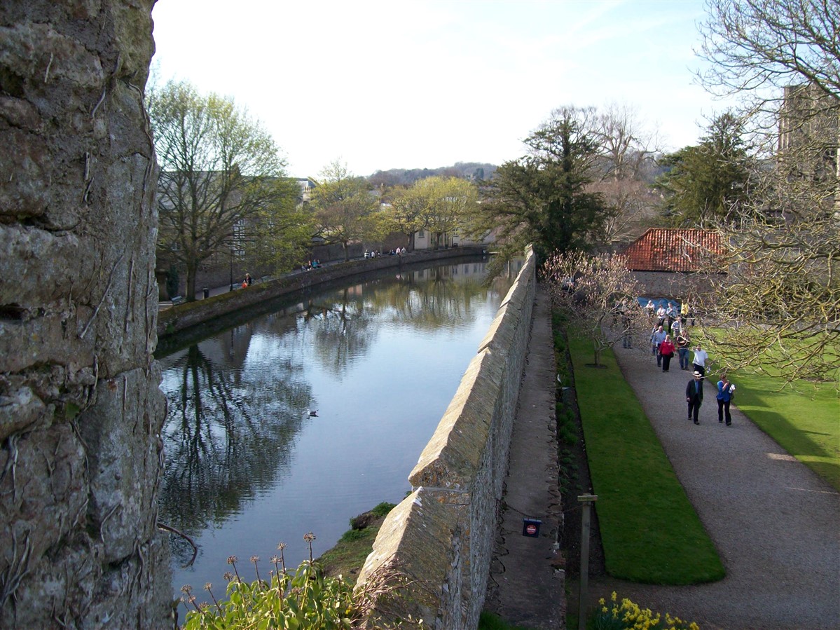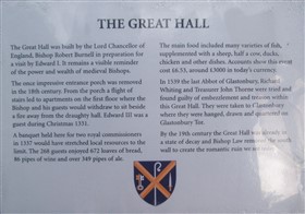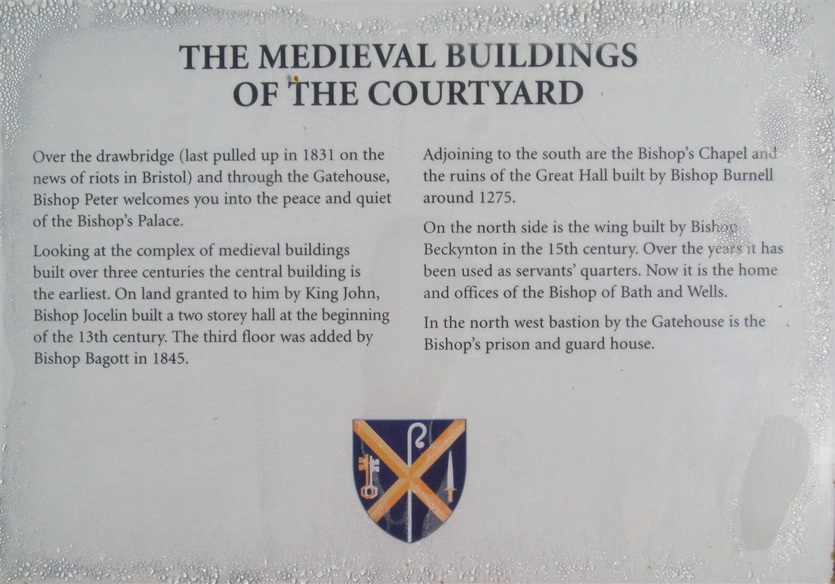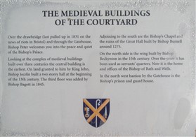 The palace is surrounded by a moat and fourteenth-century curtain wall with gatehouse. The main structure consists of two periods of 13th century domestic construction: the first floor suite of Bishop Jocelyn (1206-1242), now the bishop's residence; and the great hall of Bishop Burnell (1274-1292), a ruin in the palace gardens (Wood). The Palace's inner court consisted of the central domestic buildings, which were partially arranged around a 15th century courtyard. Outside this, but still inside the defences, would have been various functional buildings and areas: kitchens and gardens certainly and probably storehouses, stables, a bakehouse and a brewhouse. Outside the fortifications, were the bishop and his household's support system; the springs, the home farm, the mill and the park (Payne, 1999) The Bishop's Palace is located to the south of Saint Andrew's Cathedral and a number of the springs. Along with the 13th century buildings built by Bishop Jocelyn and Bishop Burnell there is also a later, 15th century range constructed by Bishop Bekynton. Although the earliest surviving part of the palace dates from Jocelyn's episcopate, there are references to an earlier site; possibly replaced by or supplemented by Jocelyn's construction (Payne and Hoggett) Ralph of Shrewsbury was appointed Bishop in 1329. With his arrival at Wells, the palace complex was embellished with a moat, walls, and a drawbridge; probably completed in honour of Edward III's visit during Christmas 1331 (Scrase). (Somerset HER)